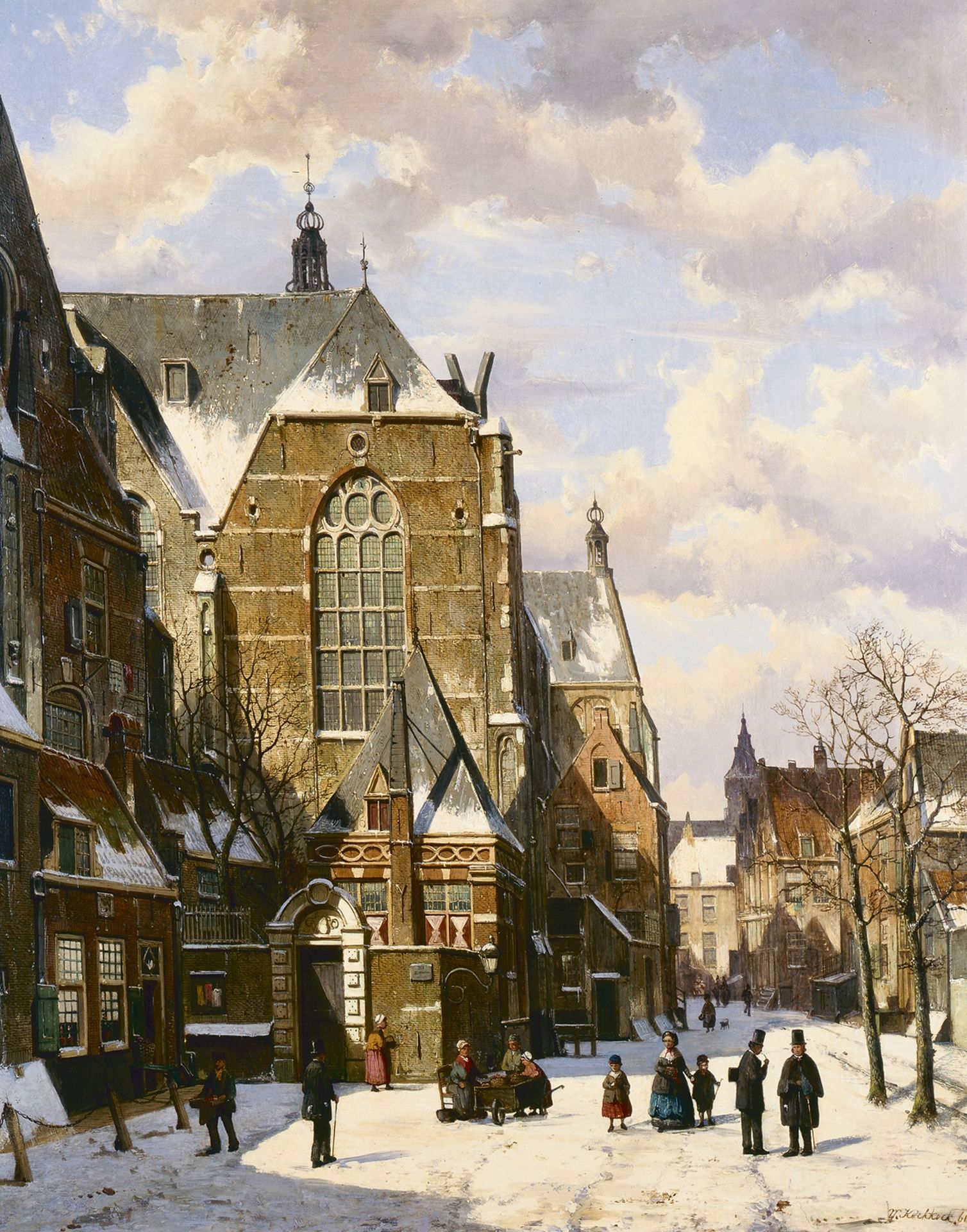Willem Koekkoek Kunstwerk • Gemälde • zuvor zu verkaufen A snow-covered village square