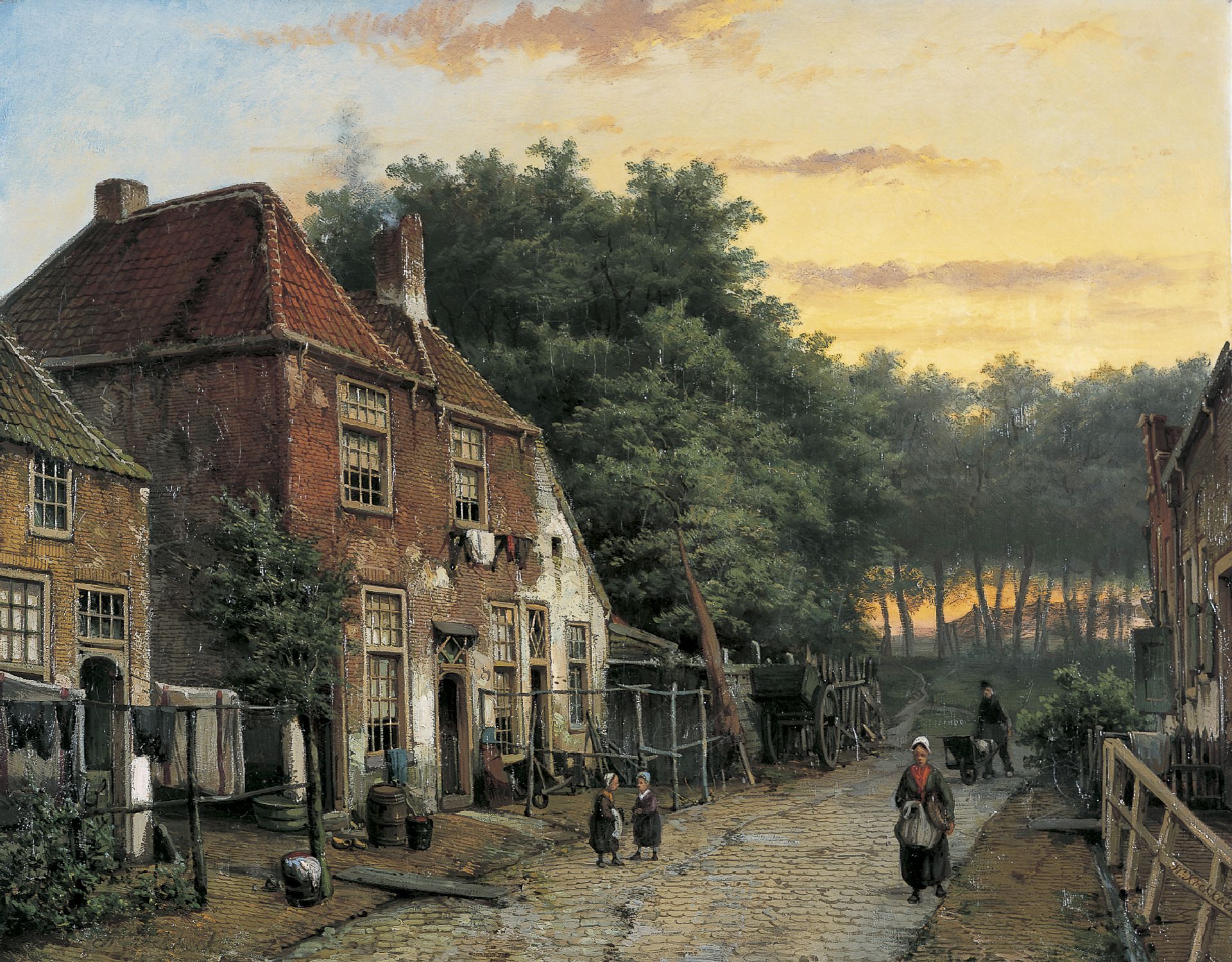 Willem Koekkoek Kunstwerk • Gemälde • zuvor zu verkaufen Figures in a Dutch town