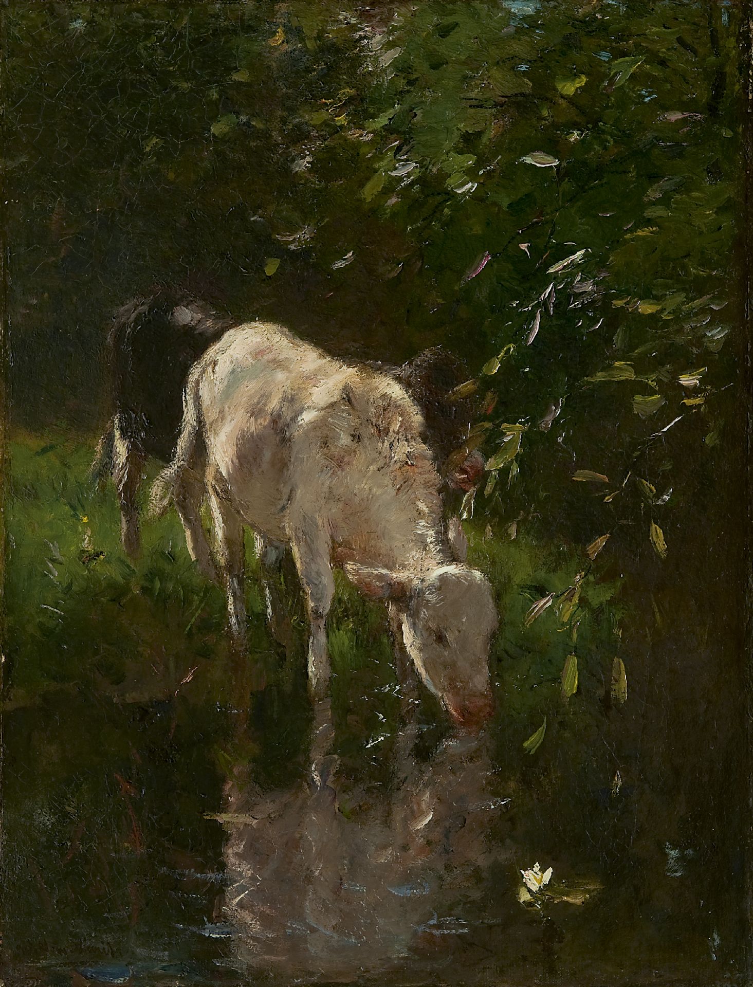 Willem Maris Kunstwerk • Gemälde • zuvor zu verkaufen A white calf, drinking