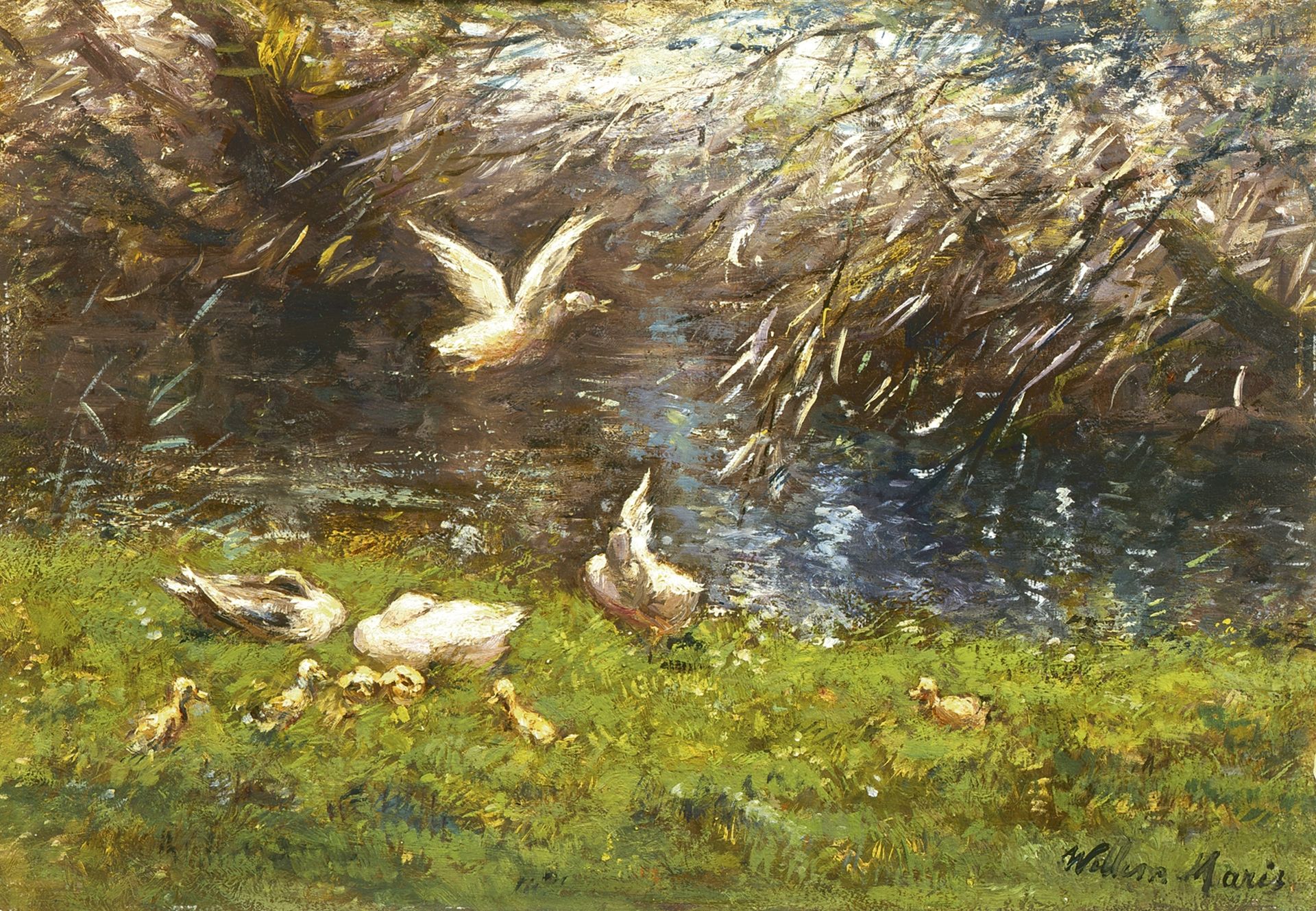 Willem Maris Kunstwerk • Gemälde • zuvor zu verkaufen Ducks on the riverbank