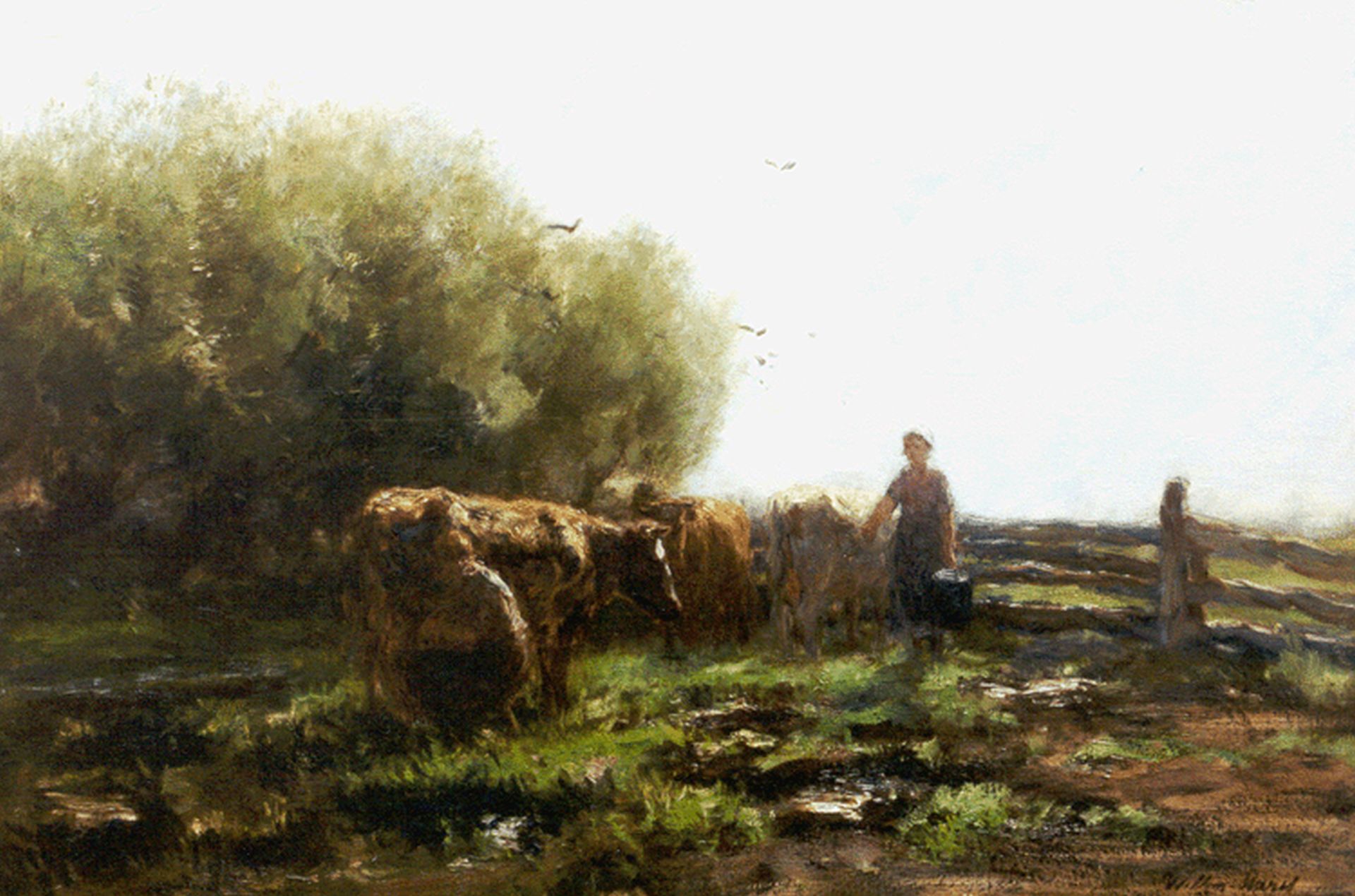 Willem Maris Kunstwerk • Gemälde • zuvor zu verkaufen Milking the cows