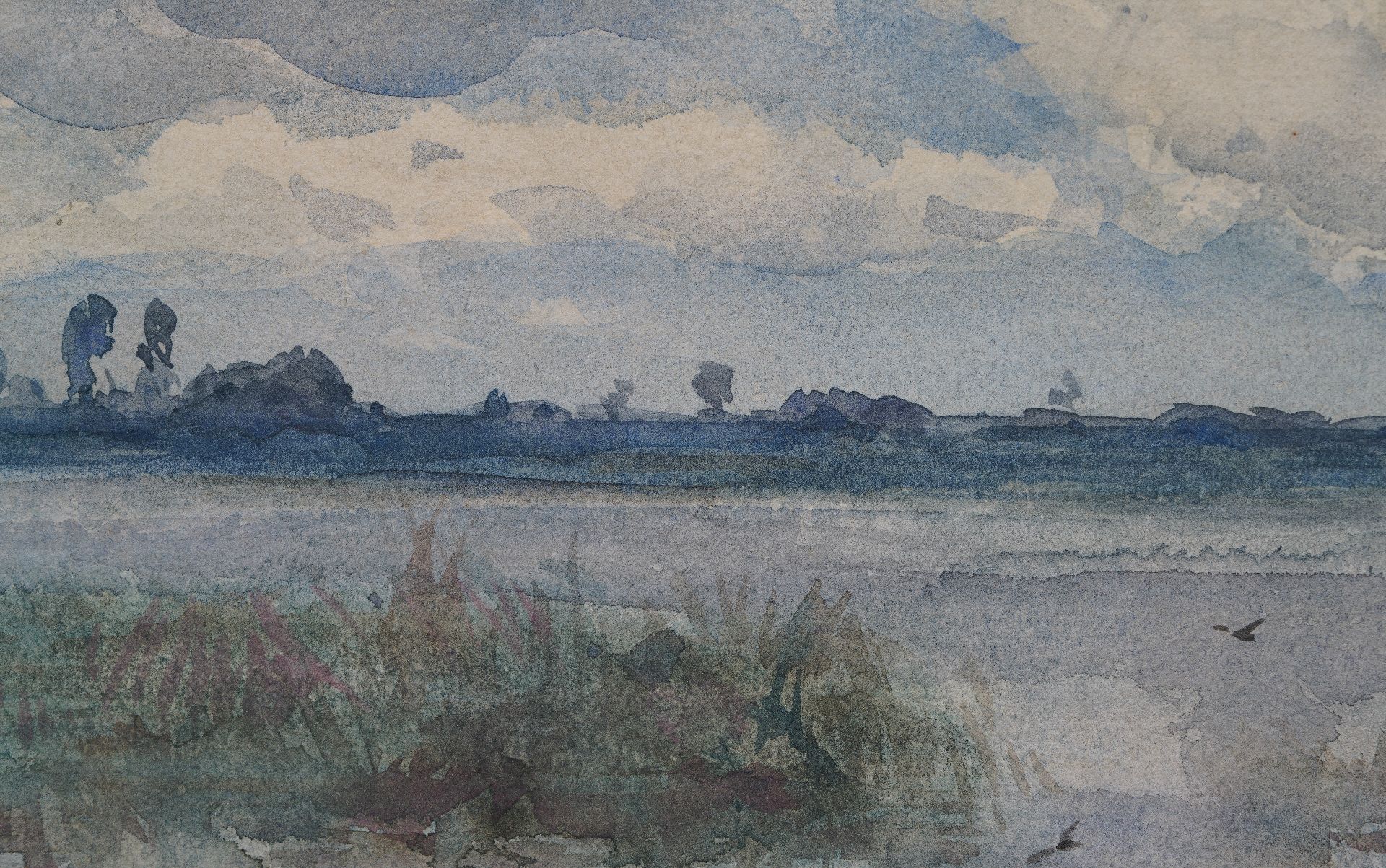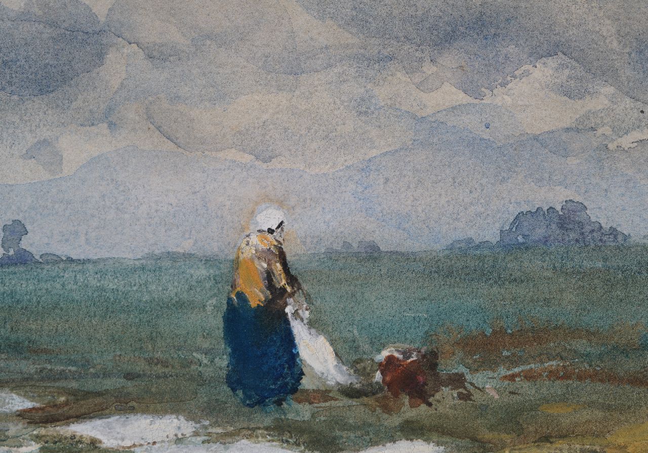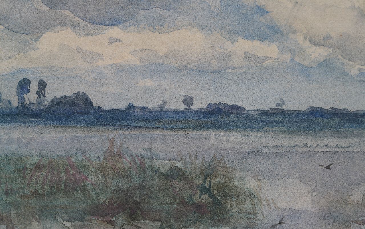 Willem Roelofs Kunstwerk • Aquarell • Zeichnung • zu verkaufen Water landscape with bleaching field