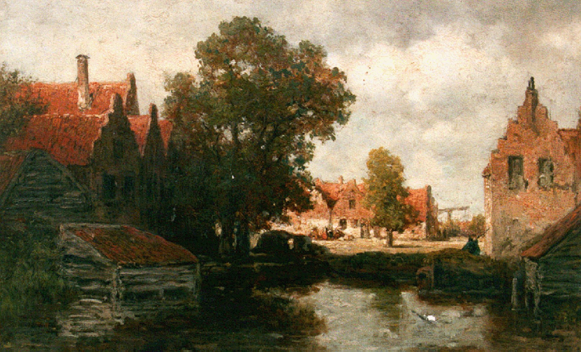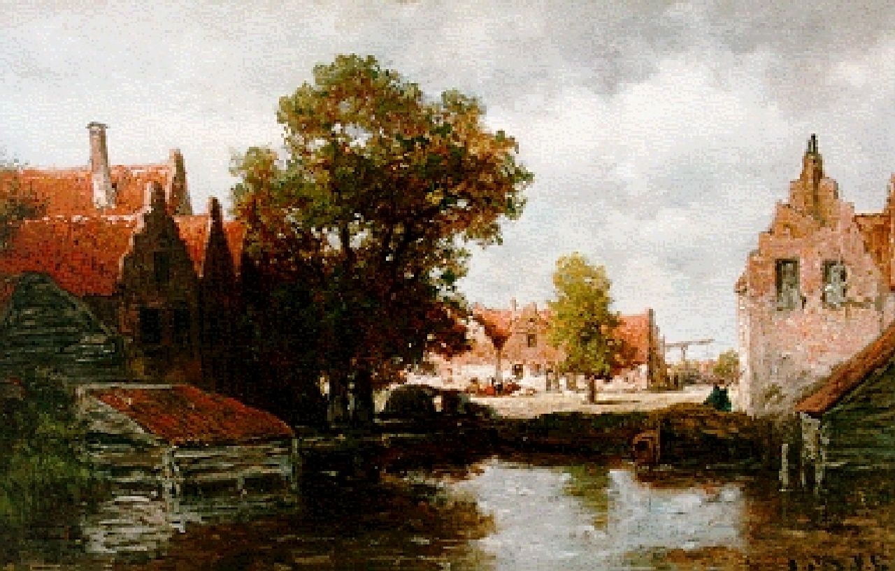 Willem Roelofs Kunstwerk • Gemälde • zuvor zu verkaufen Houses along a waterway