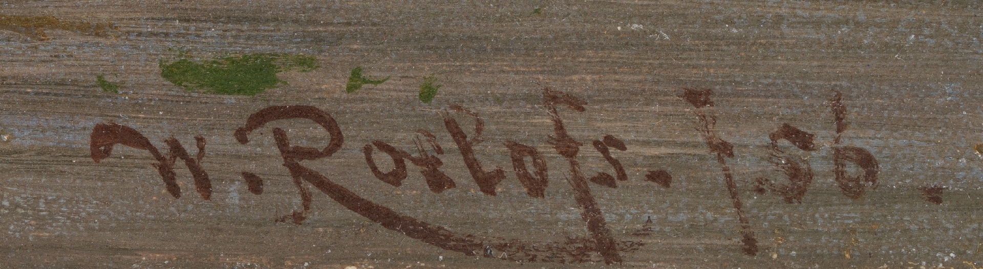 Willem Roelofs wird wohl der grosse Wegbereiter der Haagse School genannt. Er malte Waldansichten und gross angelegte Landschaften, in denen er den prunkvollen und flachen Charakter der holländischen Polderlandschaft mit ihrem Wasser und Kühen treffsicher wiedergab. Unter dem Einfluss der französischen Schule von Barbizon zog er regelmässig ins Freie um direkt in der Natur zu malen. So konnte er in einer lockeren Pinselführung die immer wechselnde Wirkung von Licht und Schatten auf die Landshaft festlegen. Einen grossen Teil seines Lebens wohnte Roelofs in Brüssel, er kam aber regelmässig nach den Niederlanden um sich Inspiration zu holen und zu malen.