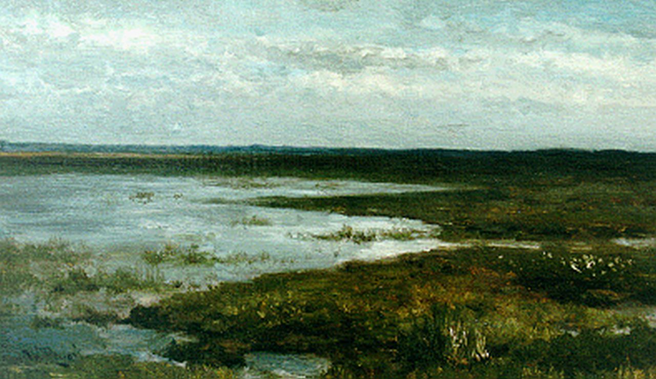Willem Roelofs | Water landscape with bleaching field, Aquarell auf Papier, 51,0 x 70,8 cm, Unterzeichnet u.l. und zu datieren Jahre 80