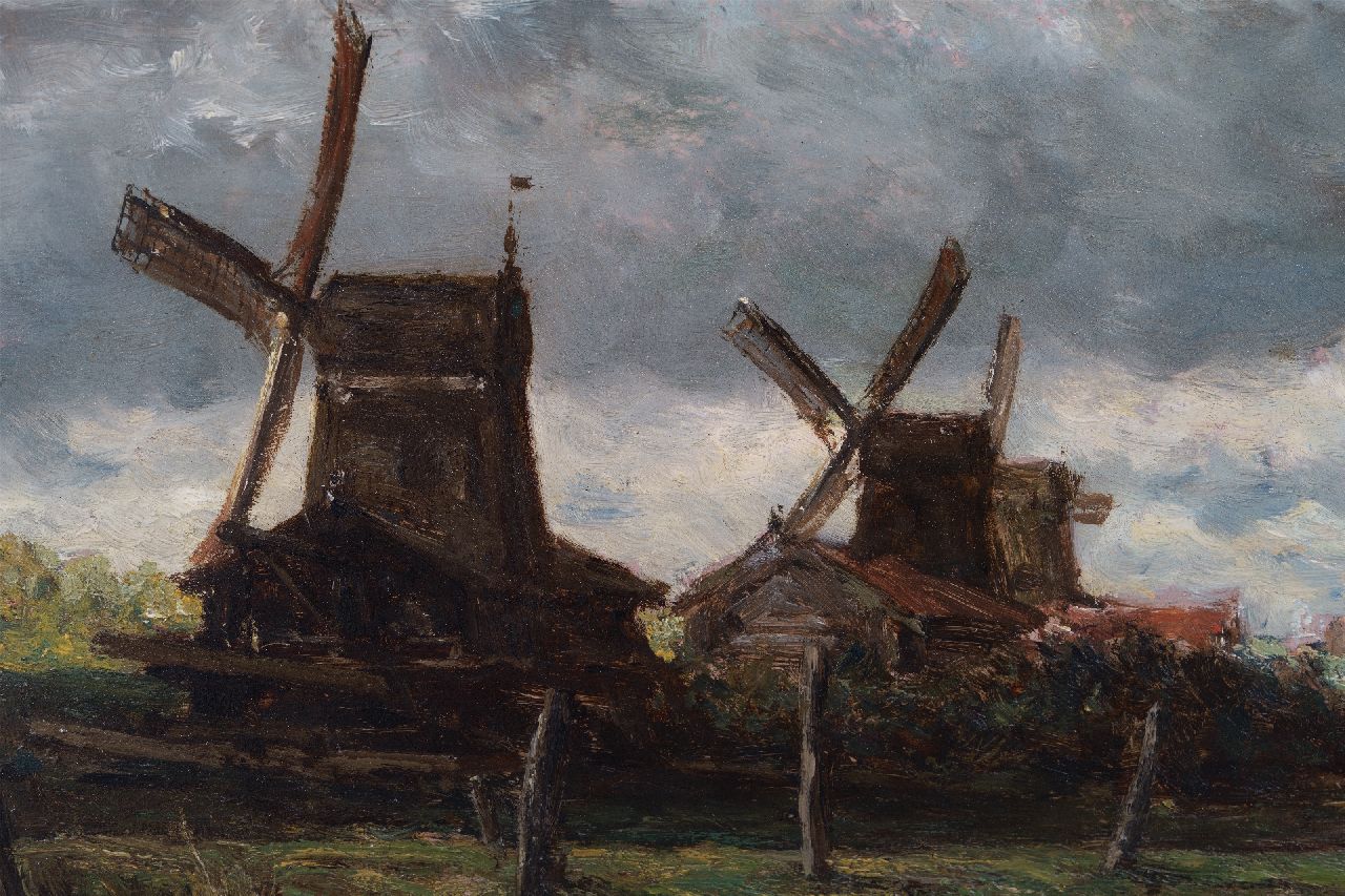 Willem Roelofs Kunstwerk • Gemälde • zuvor zu verkaufen Sägemühlen entlang des Noordendijk in der Nähe von Dordrecht.
