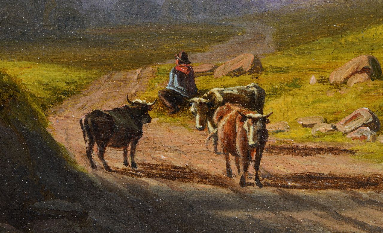 Willem Simon Petrus van der Vijver Kunstwerk • Gemälde • zu verkaufen Hügellandschaft mit Hirte am Nachmittag