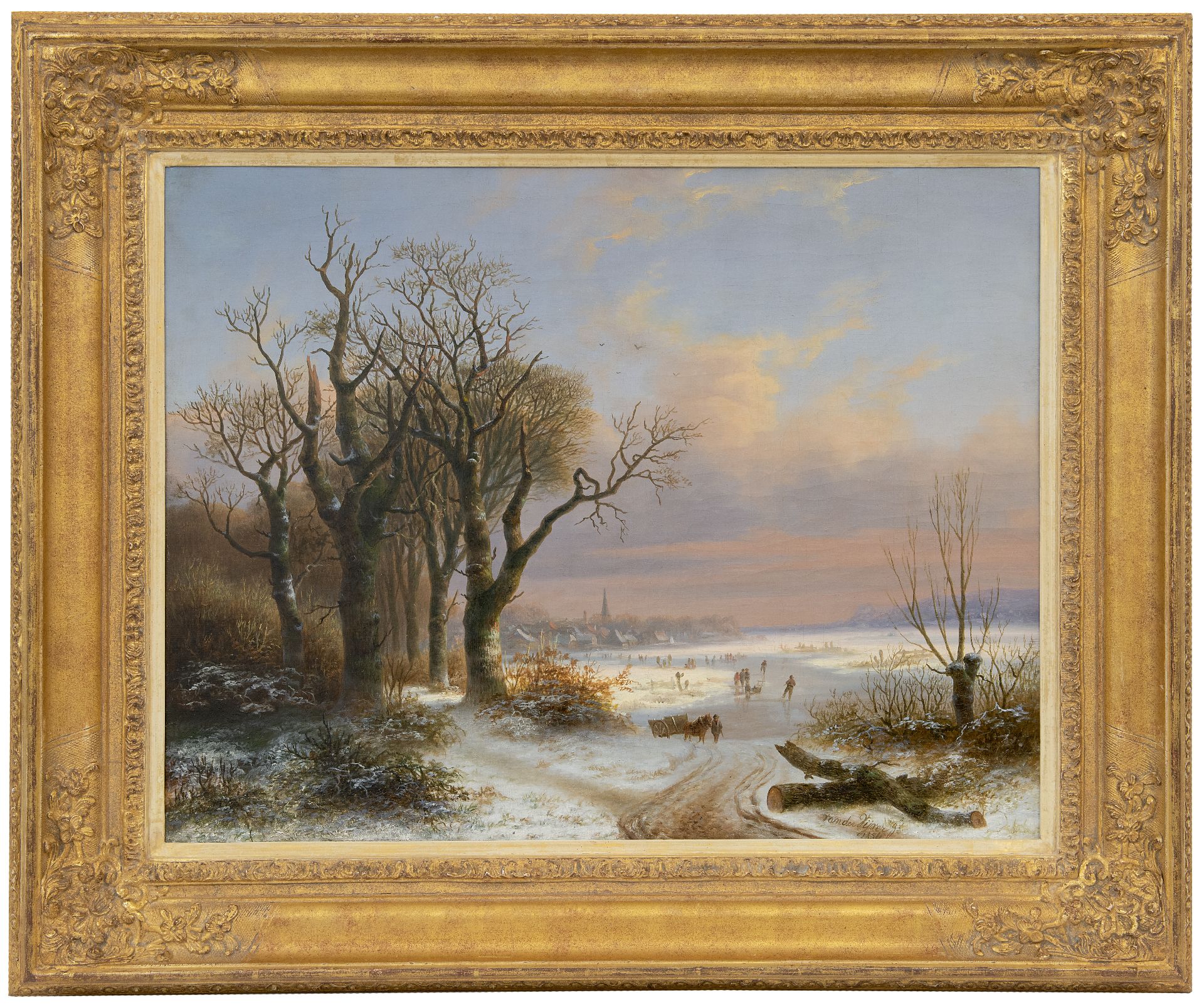 Willem Simon Petrus van der Vijver Kunstwerk • Gemälde • zu verkaufen Winterlandschaft mit Eisläufern vor einer kleinen Stadt