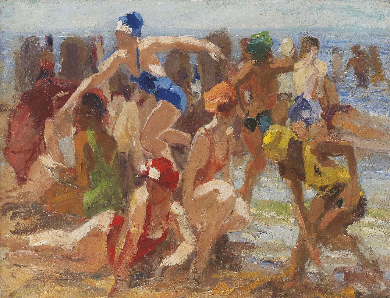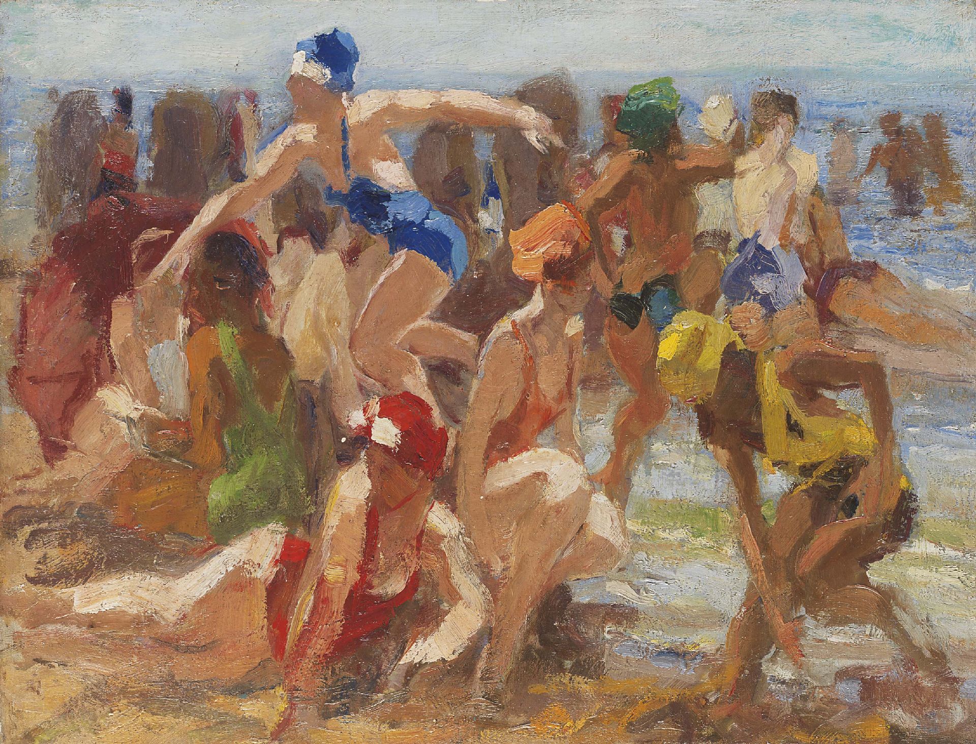 Willem Vaarzon Morel Kunstwerk • Gemälde • zuvor zu verkaufen Colourful bathers on the beach