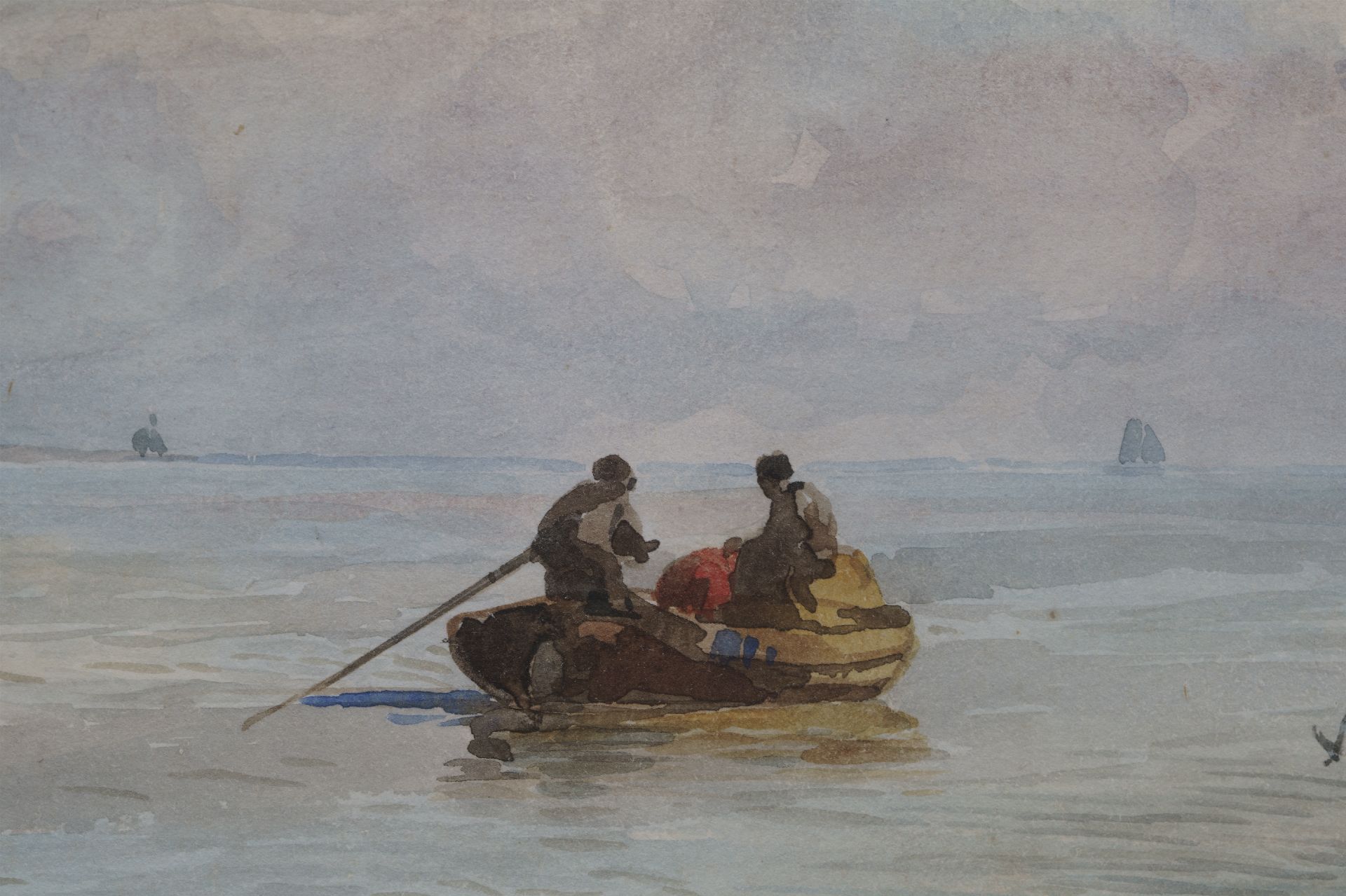 Willem van Deventer | Strandansicht mit Fischerbooten bei untergehender Sonne, Öl auf Papier auf Holz, 32,0 x 41,6 cm, Unterzeichnet r.u.