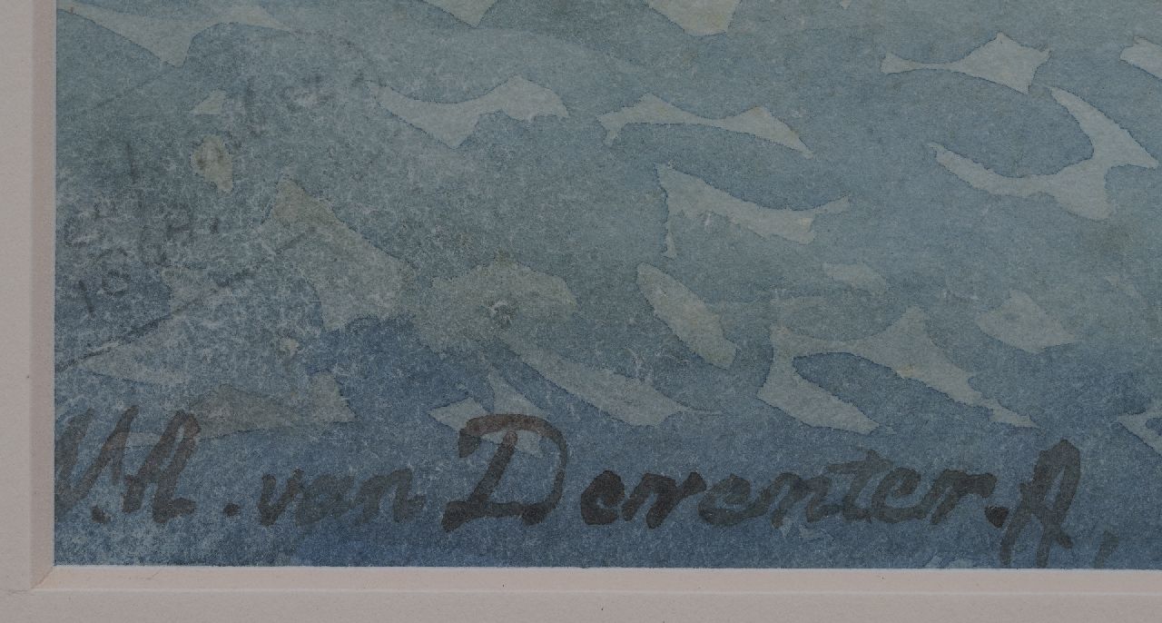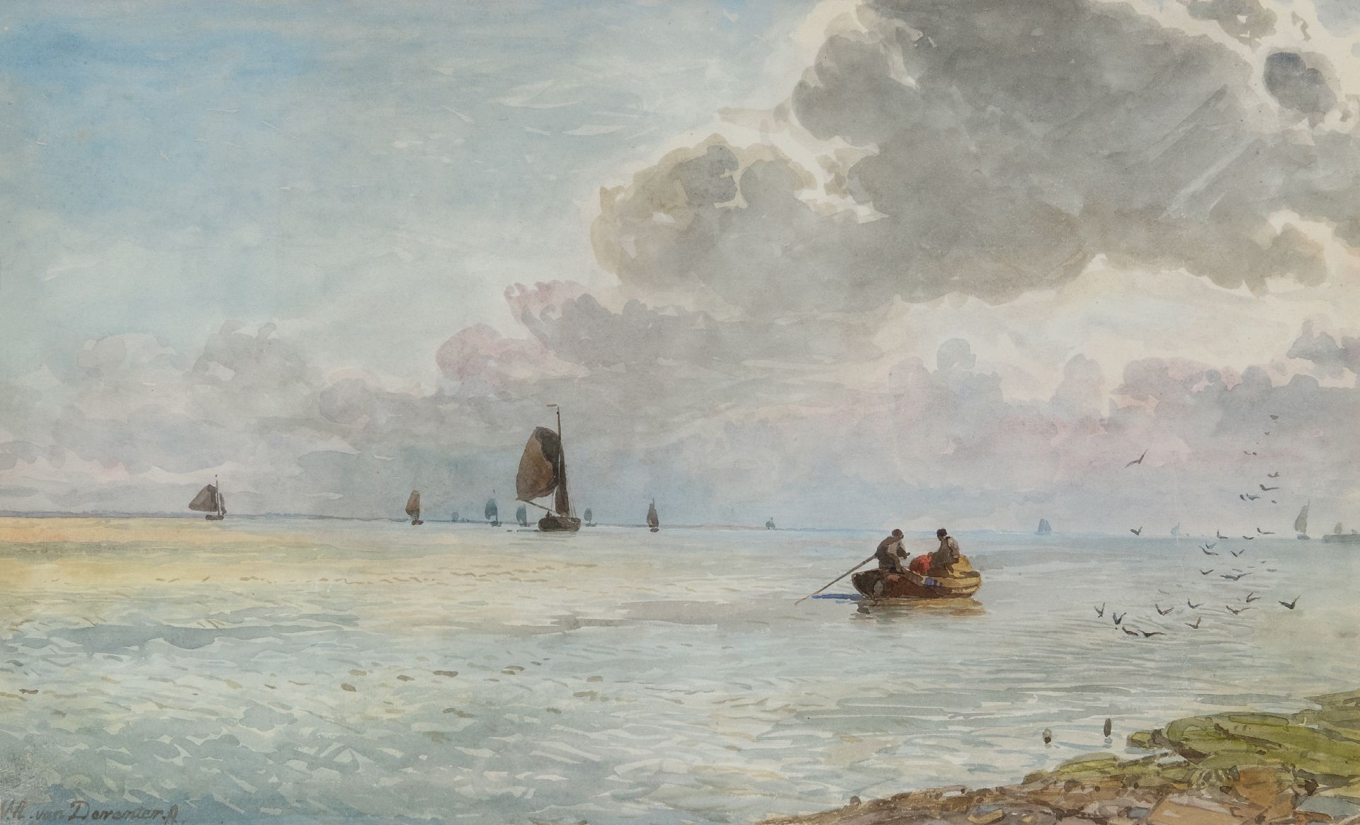 Willem van Deventer Kunstwerk • Aquarell • Zeichnung • zu verkaufen Schiffe auf ruhiger See