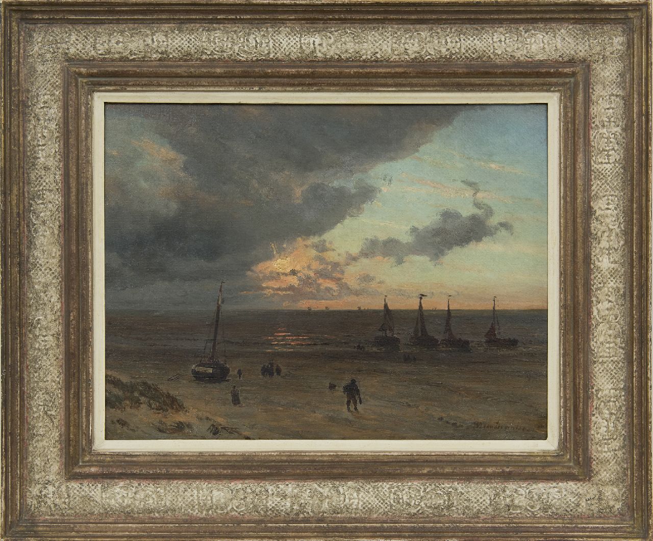 Willem van Deventer Kunstwerk • Gemälde • zu verkaufen Strandansicht mit Fischerbooten bei untergehender Sonne