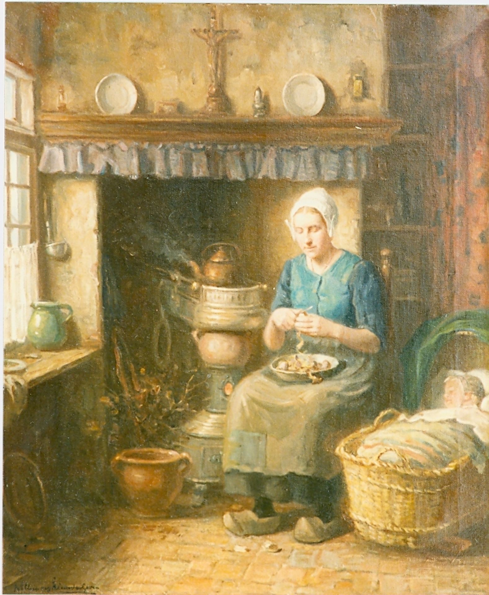 Willem van Nieuwenhoven Kunstwerk • Gemälde • zuvor zu verkaufen Peeling potatoes