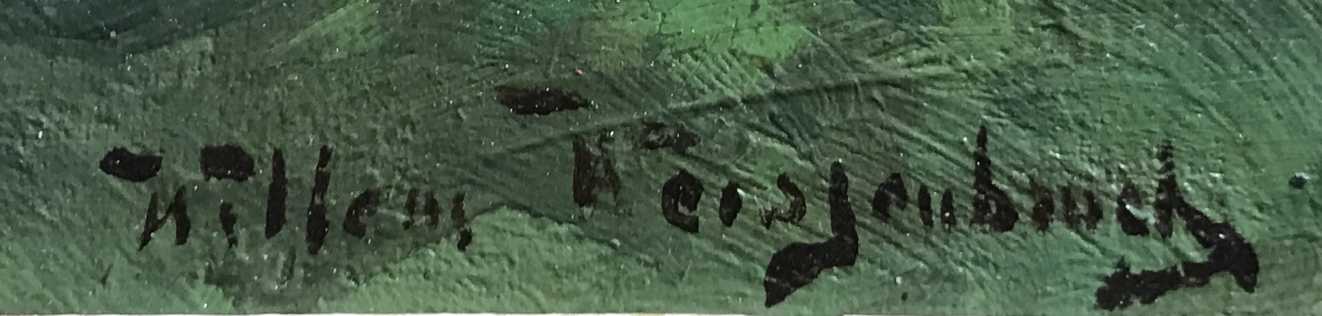 Willem Weissenbruch, Sohn und Schüler des Den Haager Schulmalers H.J. Weissenbruch folgte in Bezug auf Stil und Motivwahl den Spuren seines Vaters. Er malte Landschaften mit Wasser-, Hafen- und Strandszenen, für die er sich in und um Den Haag inspirieren ließ. Er lebte auch einige Zeit in De Kaag, Noorden, Nieuwkoop und Het Gooi. In dem für ihn charakteristischen lockeren und freien impressionistischen Stil malte er auch einige Stillleben.