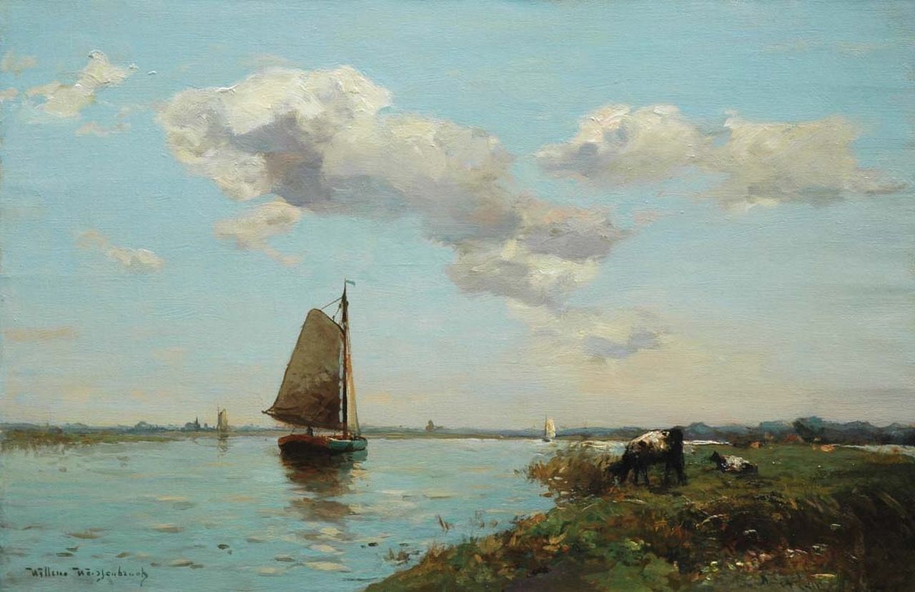 Willem Weissenbruch, Sohn und Schüler des Den Haager Schulmalers H.J. Weissenbruch folgte in Bezug auf Stil und Motivwahl den Spuren seines Vaters. Er malte Landschaften mit Wasser-, Hafen- und Strandszenen, für die er sich in und um Den Haag inspirieren ließ. Er lebte auch einige Zeit in De Kaag, Noorden, Nieuwkoop und Het Gooi. In dem für ihn charakteristischen lockeren und freien impressionistischen Stil malte er auch einige Stillleben.