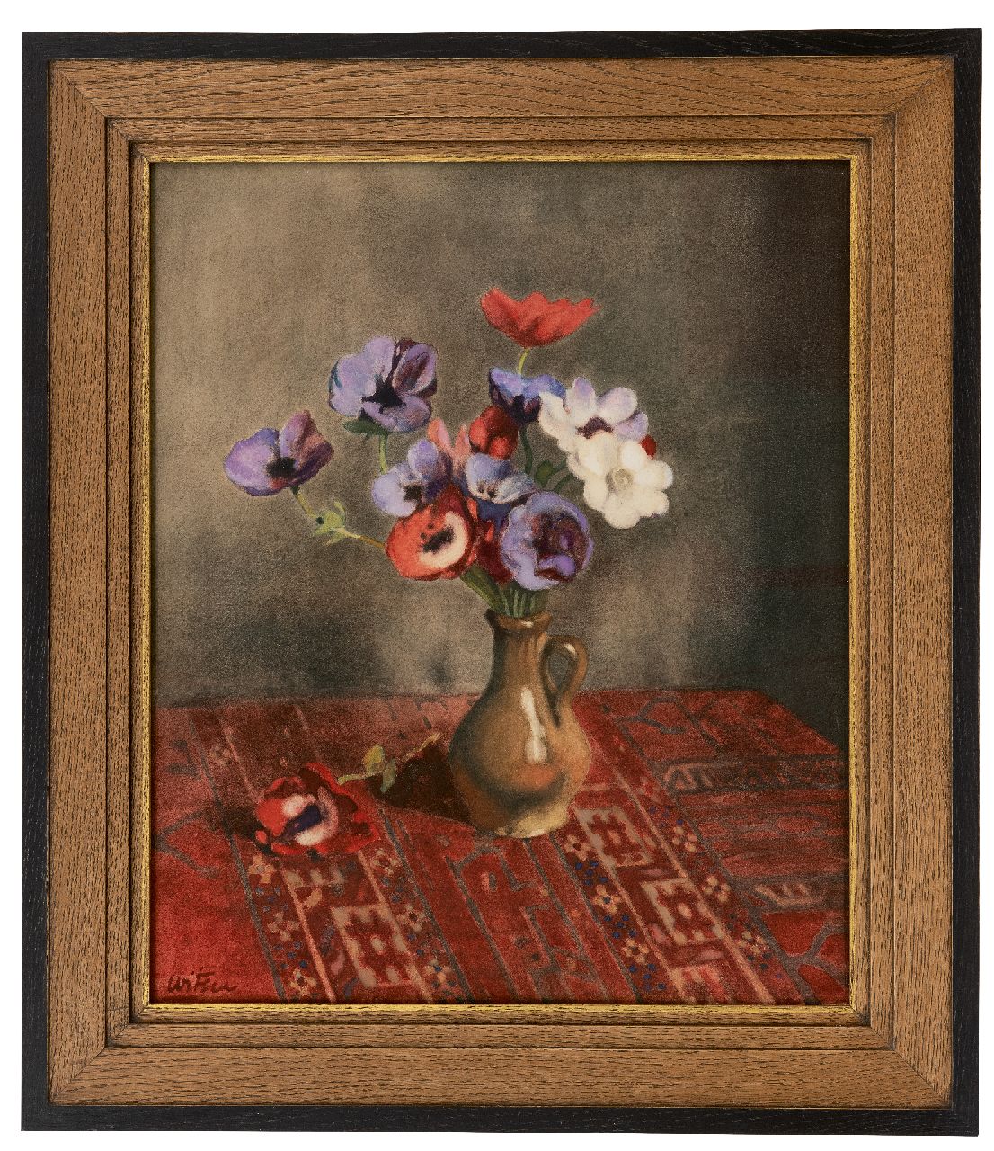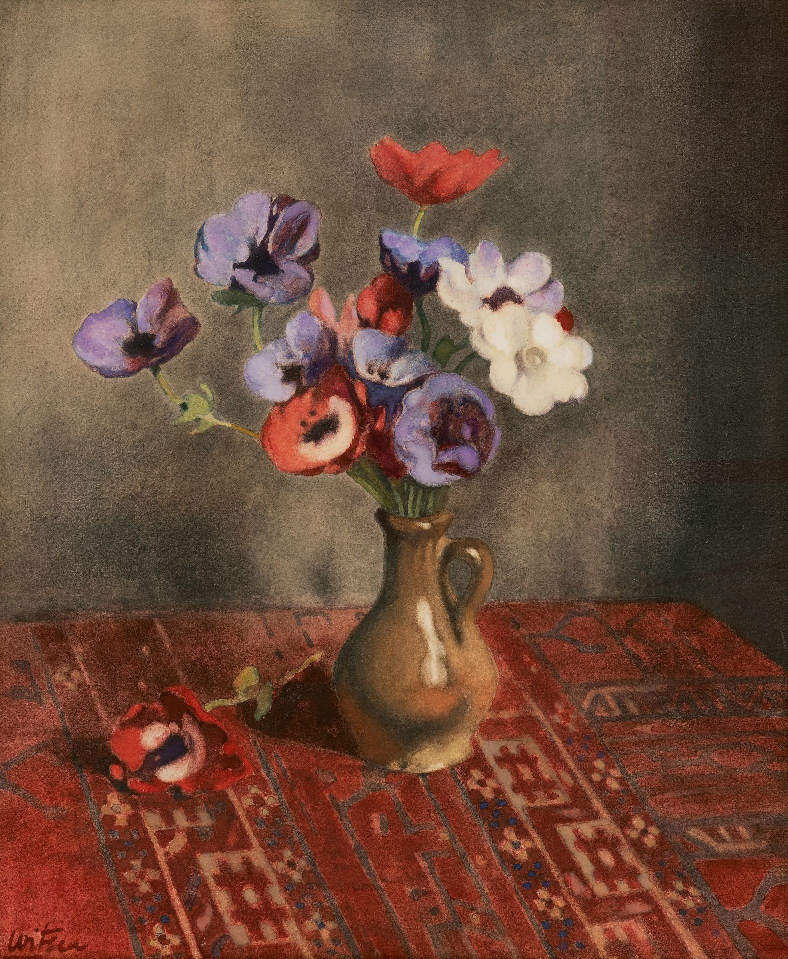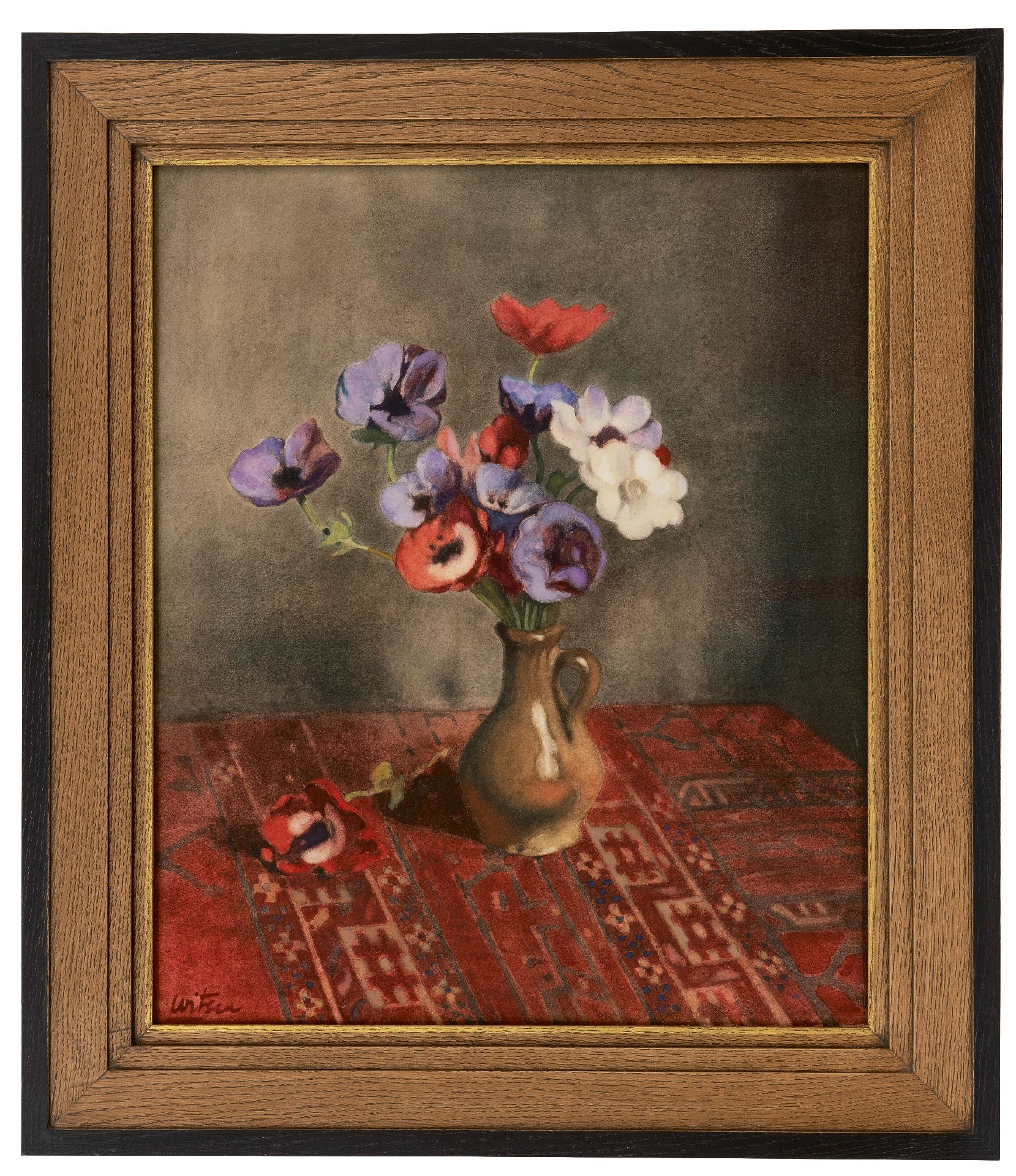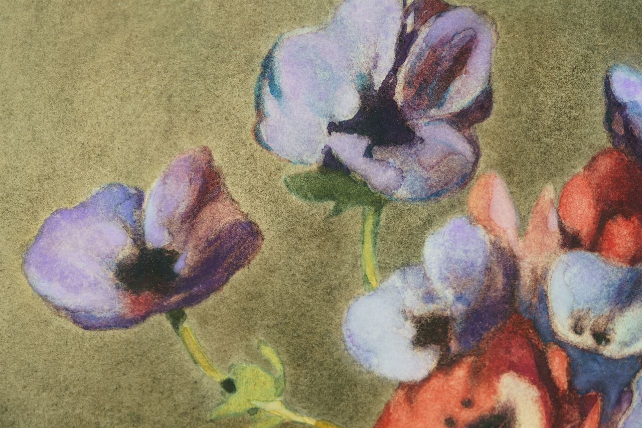 Willem Witsen Kunstwerk • Aquarell • Zeichnung • zu verkaufen Anemonen in Steingutvase