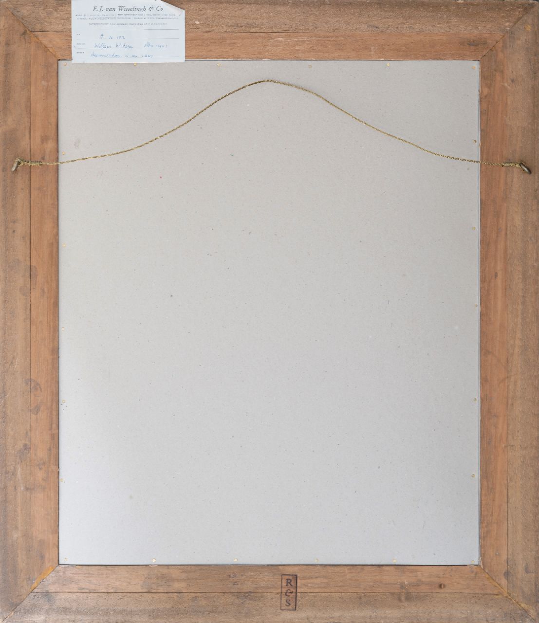 Willem Witsen, Maler und Fotograf, freundete sich an der Rijksacademie in Amsterdam mit den Malern Eduard Karsen, Tholen, Breitner und Isaac Israels an. Nach einem Aufenthalt in London, wo er Whistlers Werk kennenlernte, begann Witsen verträumte, ruhige Stadtlandschaften in dunkler Palette zu malen, die zu seinem Spezialgebiet werden sollten. Im Gegensatz zu den geschäftigen Stadtimpressionen von Breitner und Israels sah Witsen Amsterdam als ein Denkmal von zeitloser Schönheit. Nach 1910 malte er viele seiner Amsterdamer Stadtansichten vom Wasser aus; Er hatte einen Lastkahn mit einer Executive-Kabine am Montelbaanstoren, die als schwimmendes Atelier diente. Ab 1911 tauschte er es gegen einen Deckkahn mit einer Kabine, den er an Orte versetzen konnte, an denen er arbeiten wollte.