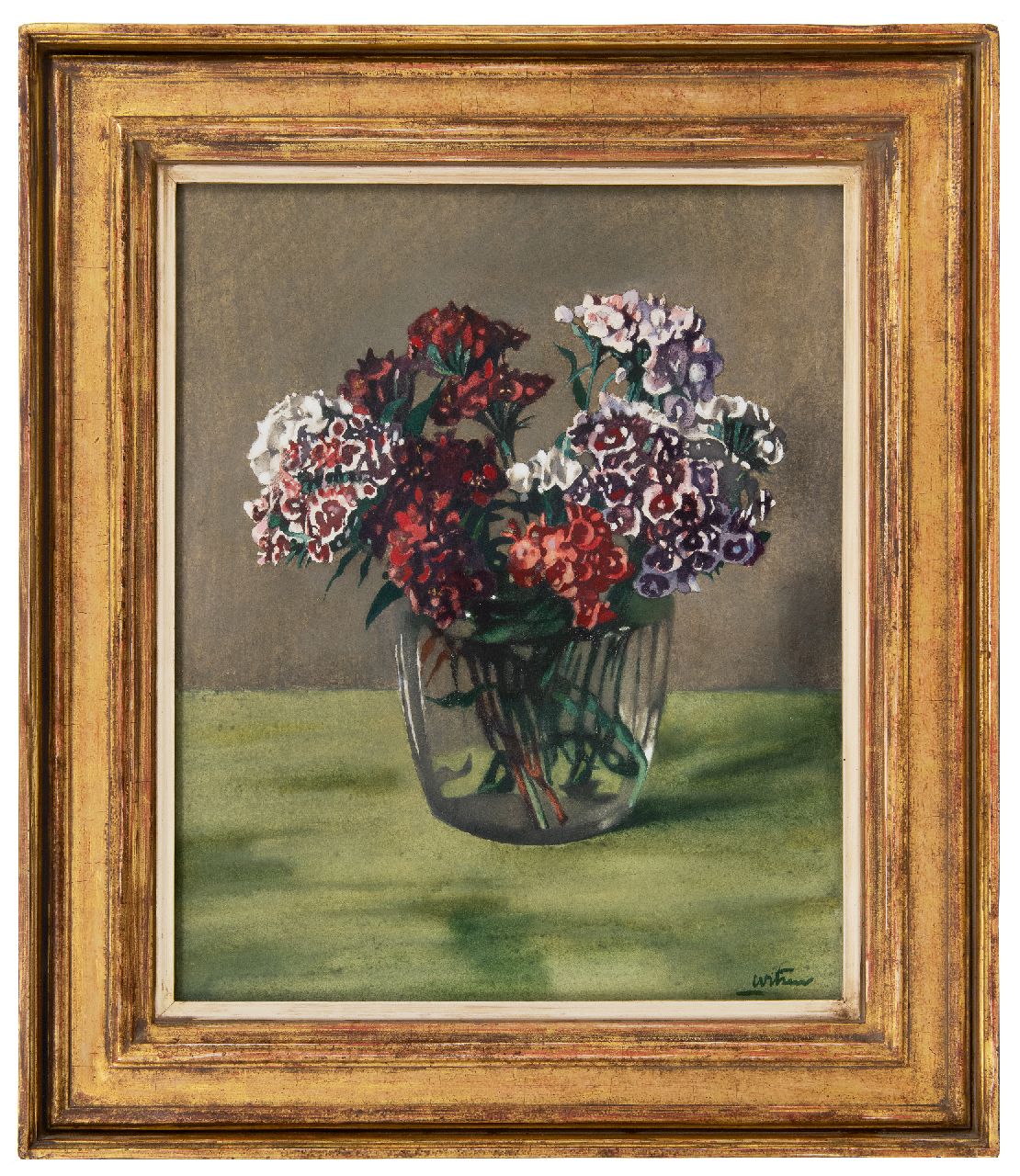 Willem Witsen Kunstwerk • Aquarell • Zeichnung • zu verkaufen Bartnelken in einer Glasvase