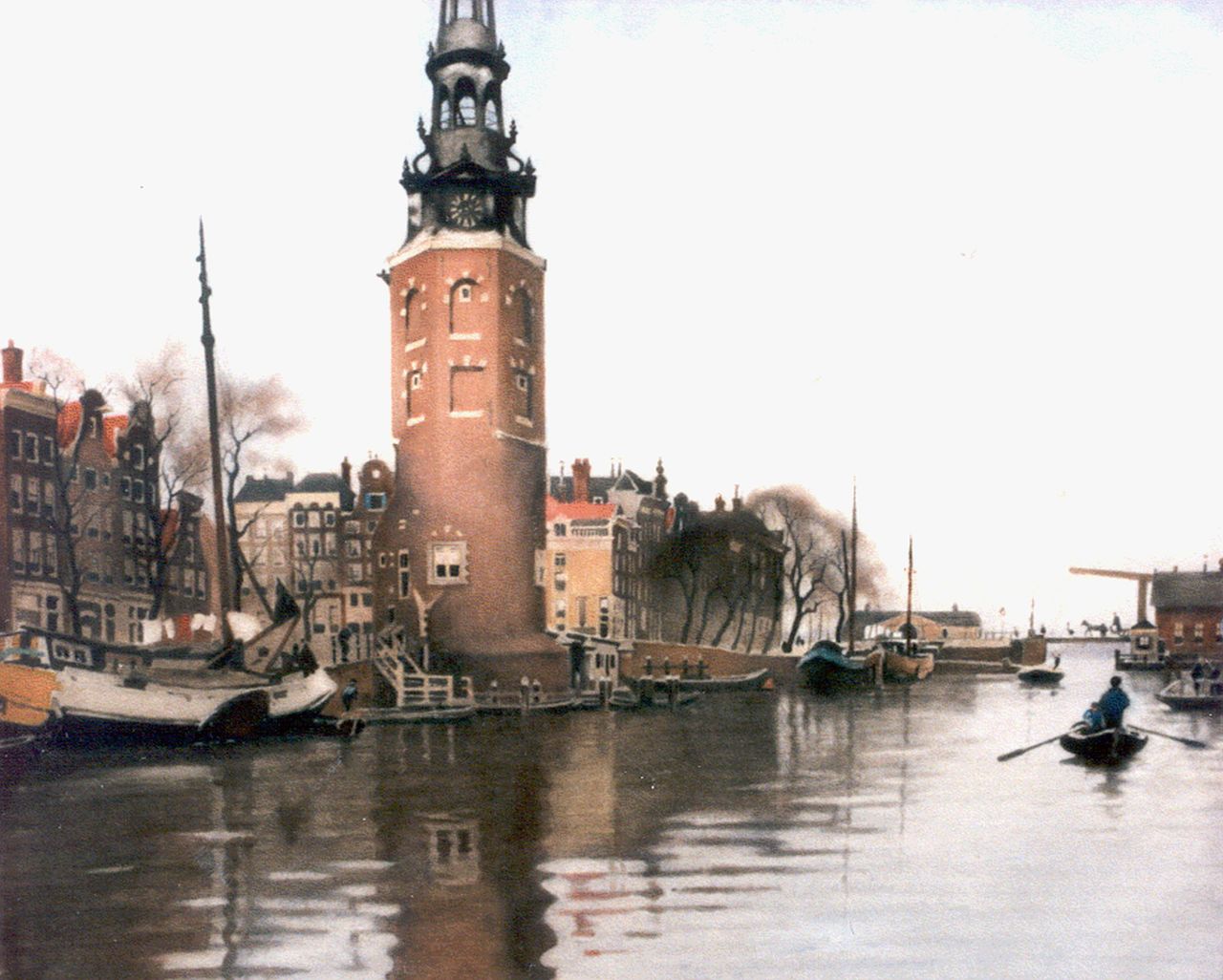 Willem Witsen, Maler und Fotograf, freundete sich an der Rijksacademie in Amsterdam mit den Malern Eduard Karsen, Tholen, Breitner und Isaac Israels an. Nach einem Aufenthalt in London, wo er Whistlers Werk kennenlernte, begann Witsen verträumte, ruhige Stadtlandschaften in dunkler Palette zu malen, die zu seinem Spezialgebiet werden sollten. Im Gegensatz zu den geschäftigen Stadtimpressionen von Breitner und Israels sah Witsen Amsterdam als ein Denkmal von zeitloser Schönheit. Nach 1910 malte er viele seiner Amsterdamer Stadtansichten vom Wasser aus; Er hatte einen Lastkahn mit einer Executive-Kabine am Montelbaanstoren, die als schwimmendes Atelier diente. Ab 1911 tauschte er es gegen einen Deckkahn mit einer Kabine, den er an Orte versetzen konnte, an denen er arbeiten wollte.