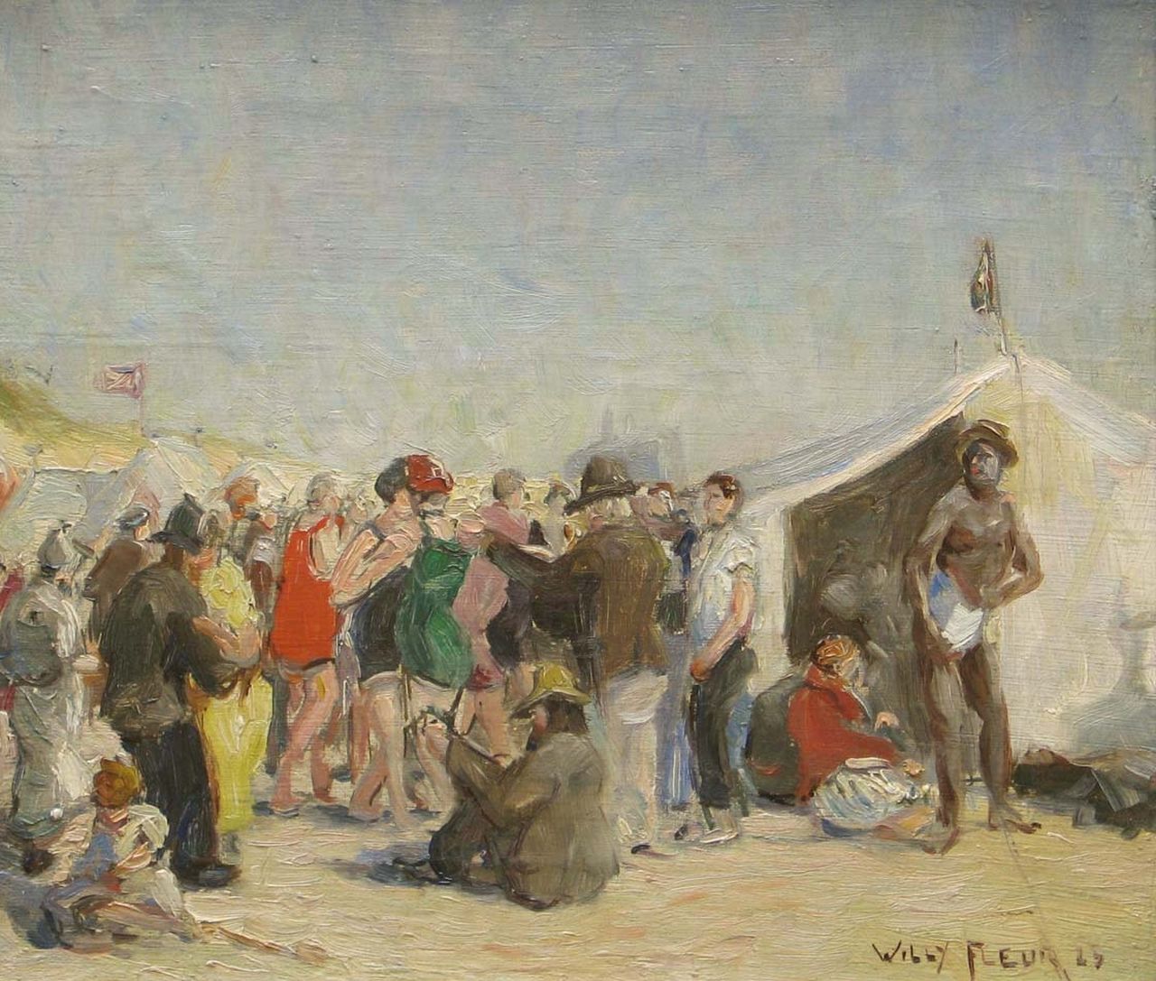 Willy Fleur Kunstwerk • Gemälde • zuvor zu verkaufen A party at the beach