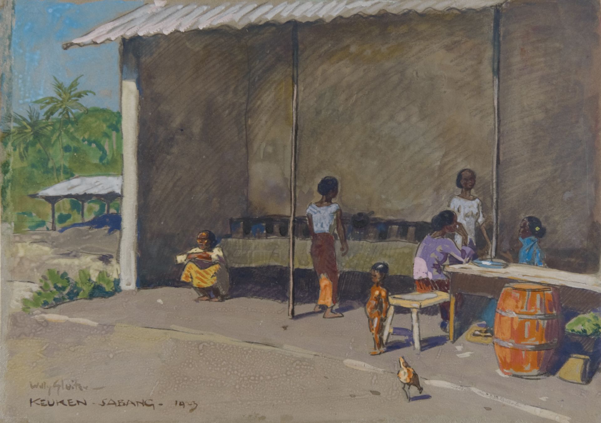 Willy Sluiter Kunstwerk • Aquarell • Zeichnung • zuvor zu verkaufen A kitchen in Sabang