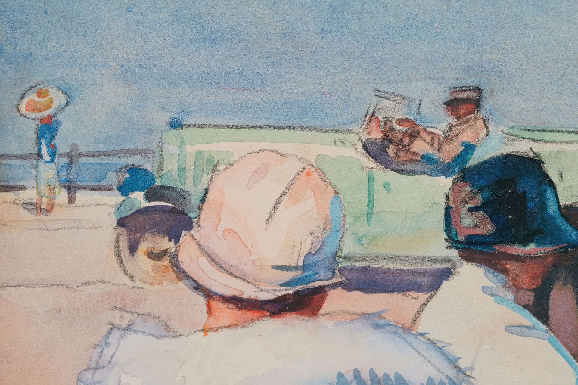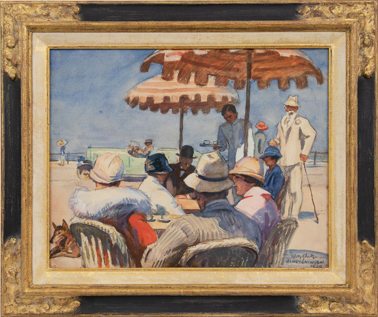 Willy Sluiter Kunstwerk • Aquarell • Zeichnung • zu verkaufen Auf dem Boulevard von Scheveningen