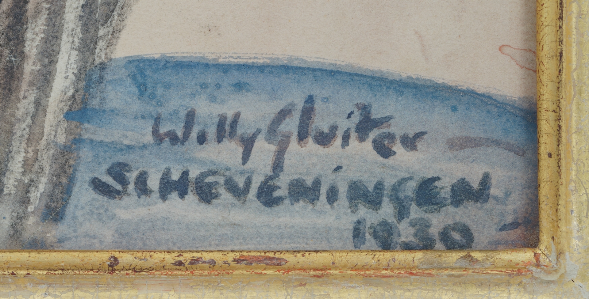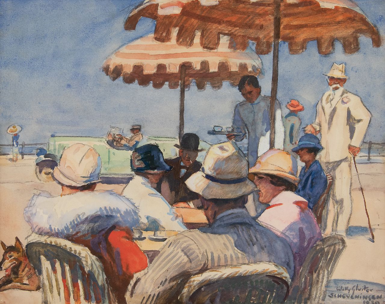 Willy Sluiter hatte zwei ausgesprochene Talente: er malte wunderschöne, impressionistische Landschaften und Hafen- und Strandansichten. Ausserdem war er ein eingefleisster Zeichner, der in flüssigen, oft humorvollen Skizzen und Aquarellen zum Festlegen des Alltagsleben imstande war. In seinen Zeichnungen von Freunden und Verwandten, vom mondänen Strandleben und der kulturellen Szene in Scheveningen, von Reisen und der wohlhabenden Schneetouristen in Davos und St. Moritz, erwies er sich als ein Chronist seiner Zeit. Sluiters Zeichentalent führte auch zu vielen Aufträgen für Buchumschläge, Illustrationen, Plakate und andere Werbearbeit. Ab die zwanziger Jahre war er ein bekannter und sehr erfolgreicher Künstler.