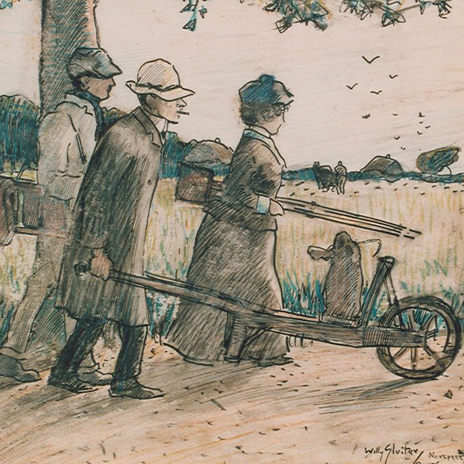 Willy Sluiter hatte zwei ausgesprochene Talente: er malte wunderschöne, impressionistische Landschaften und Hafen- und Strandansichten. Ausserdem war er ein eingefleisster Zeichner, der in flüssigen, oft humorvollen Skizzen und Aquarellen zum Festlegen des Alltagsleben imstande war. In seinen Zeichnungen von Freunden und Verwandten, vom mondänen Strandleben und der kulturellen Szene in Scheveningen, von Reisen und der wohlhabenden Schneetouristen in Davos und St. Moritz, erwies er sich als ein Chronist seiner Zeit. Sluiters Zeichentalent führte auch zu vielen Aufträgen für Buchumschläge, Illustrationen, Plakate und andere Werbearbeit. Ab die zwanziger Jahre war er ein bekannter und sehr erfolgreicher Künstler.