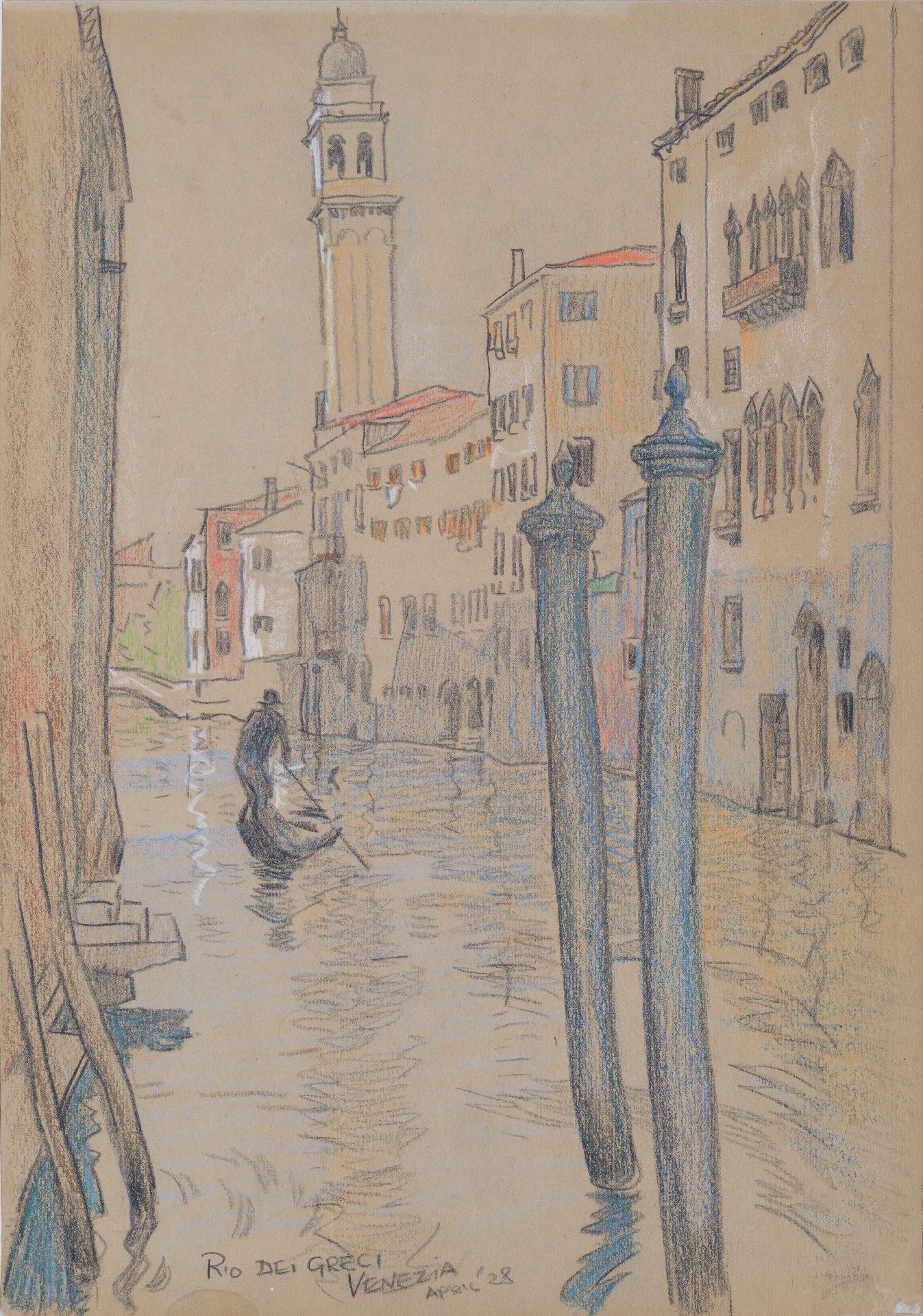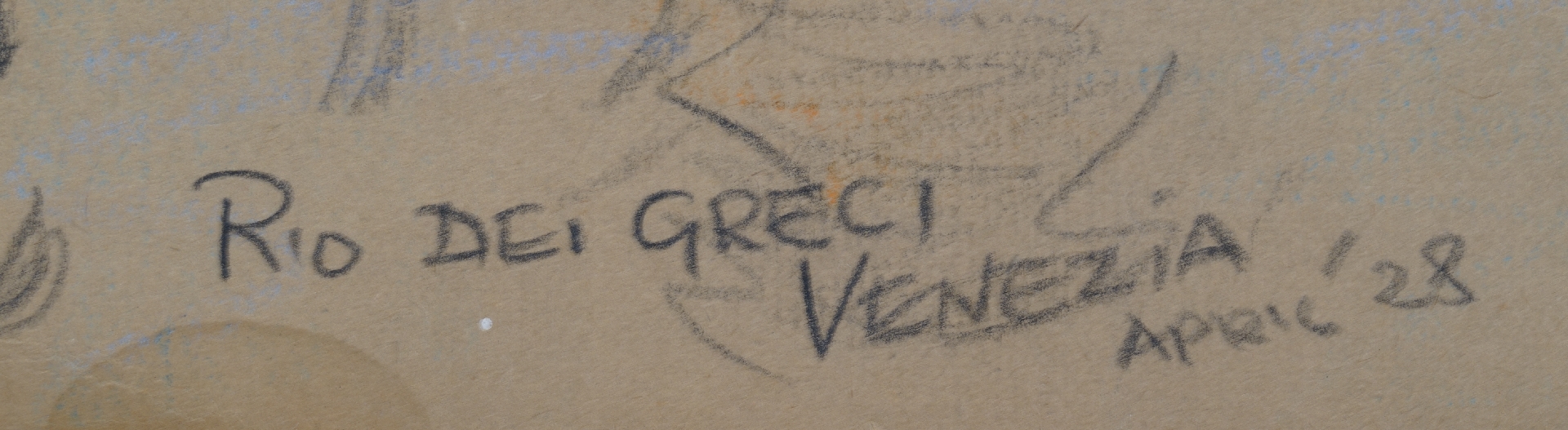 Willy Sluiter Kunstwerk • Aquarell • Zeichnung • zu verkaufen Der Rio dei Greci, Venedig