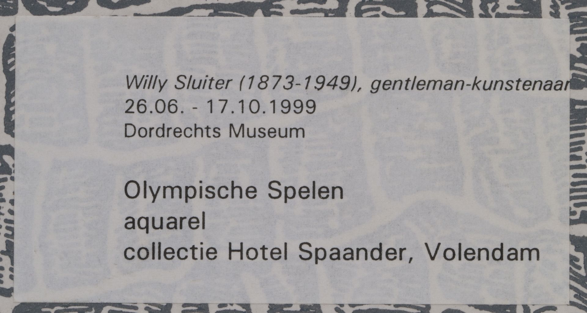 Ausgestellt: Dordrecht, Dordrechts Museum, 'Willy Sluiter (1873-1949). Gentleman-kunstenaaar', 27 juni-17 okt. 1999.