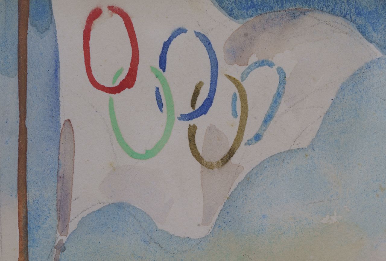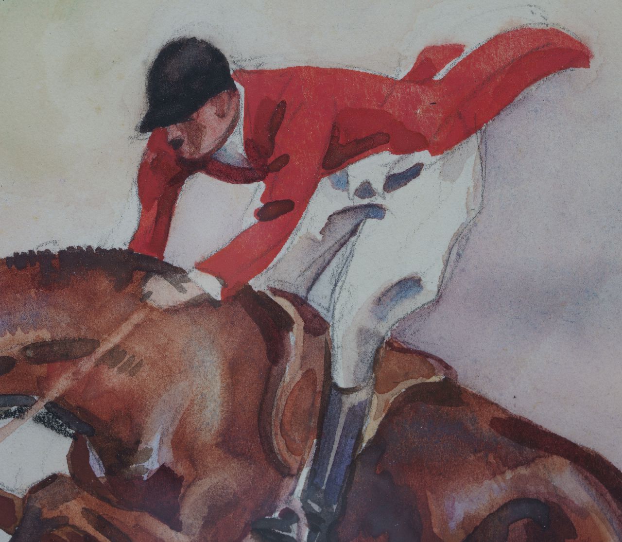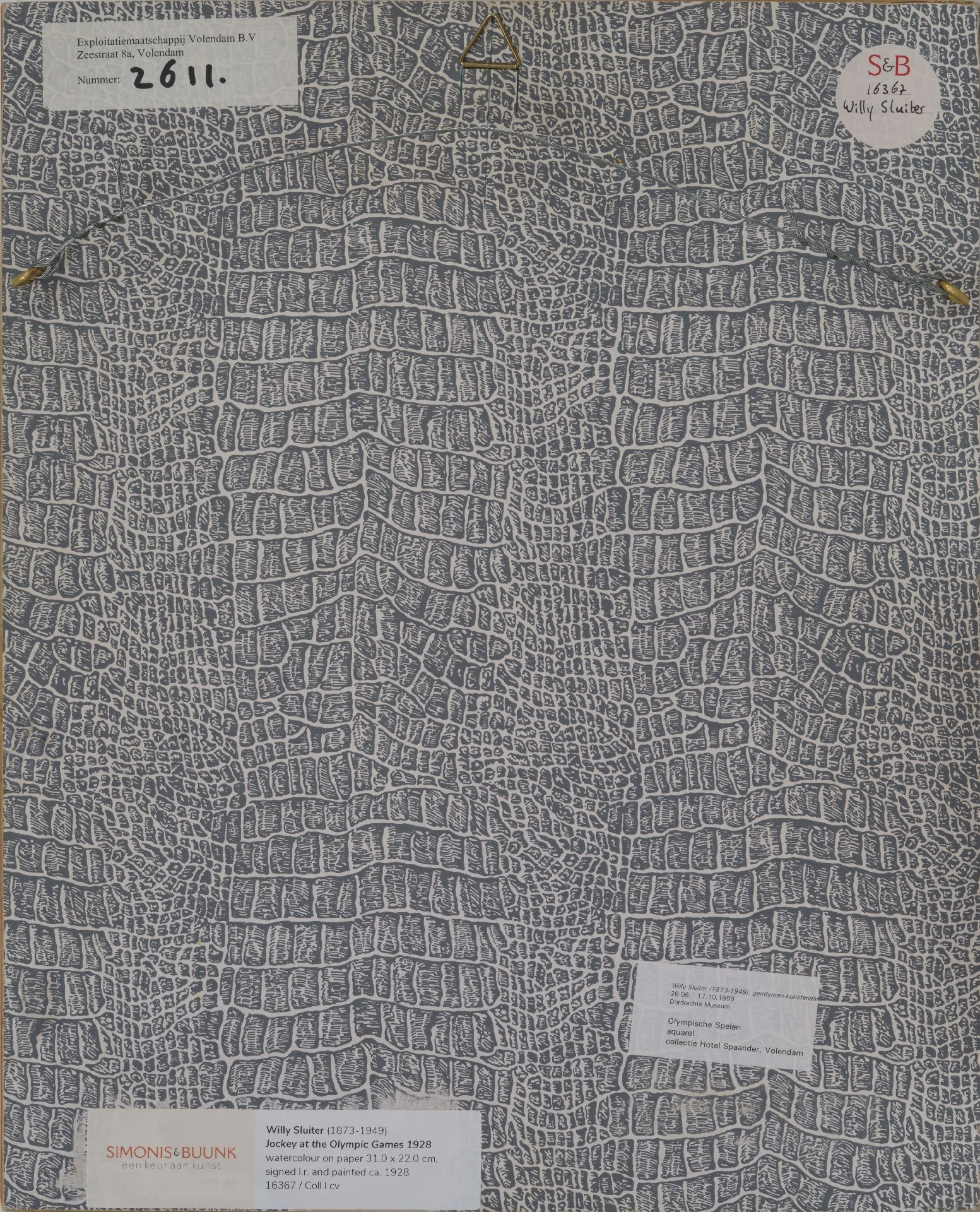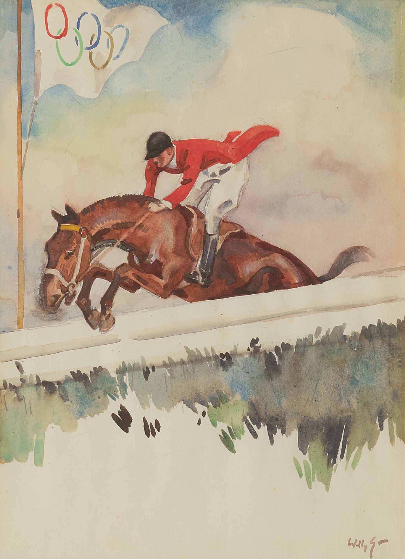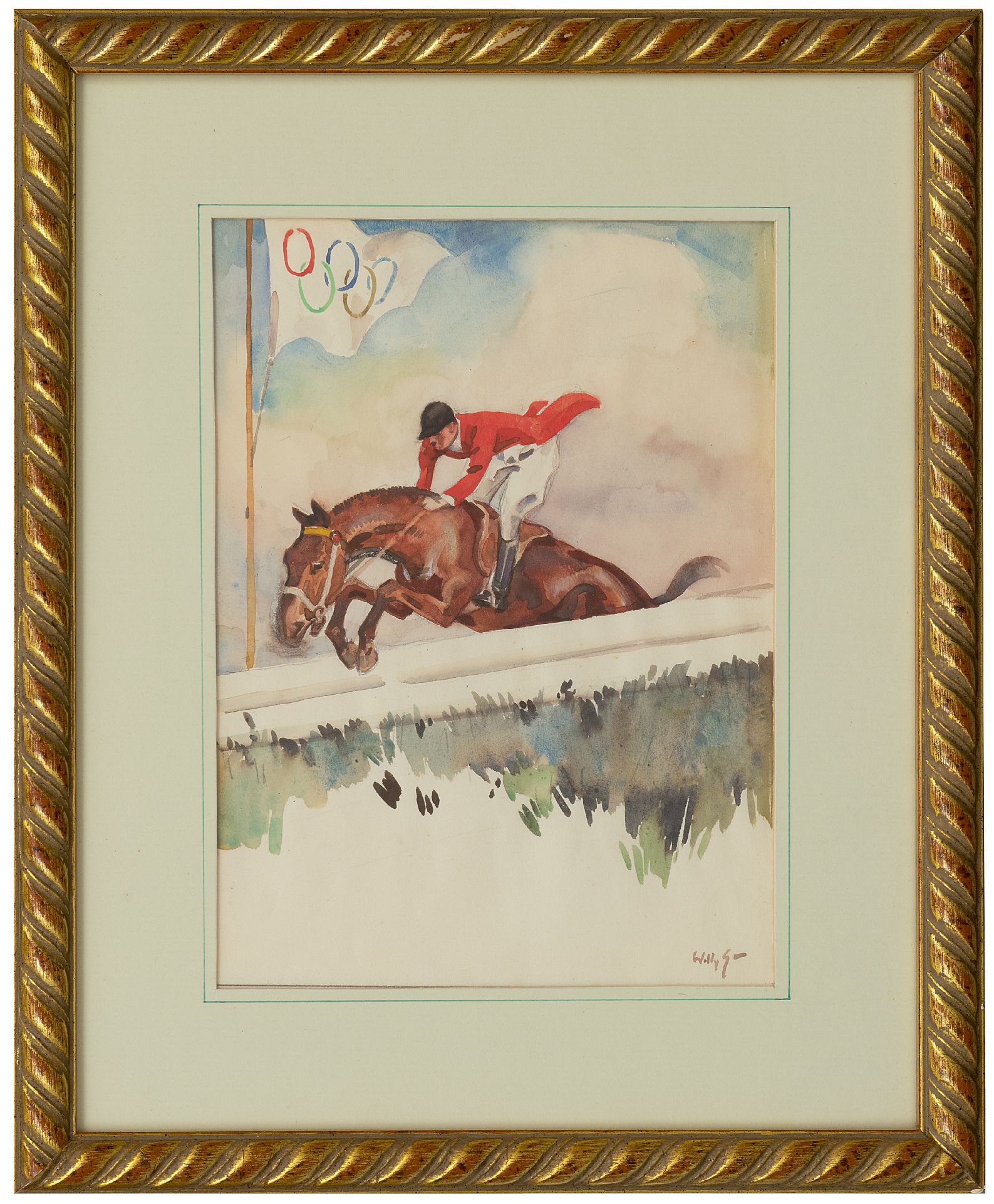 Willy Sluiter Kunstwerk • Aquarell • Zeichnung • zuvor zu verkaufen Springreiter auf den Olympischen Spielen 1928