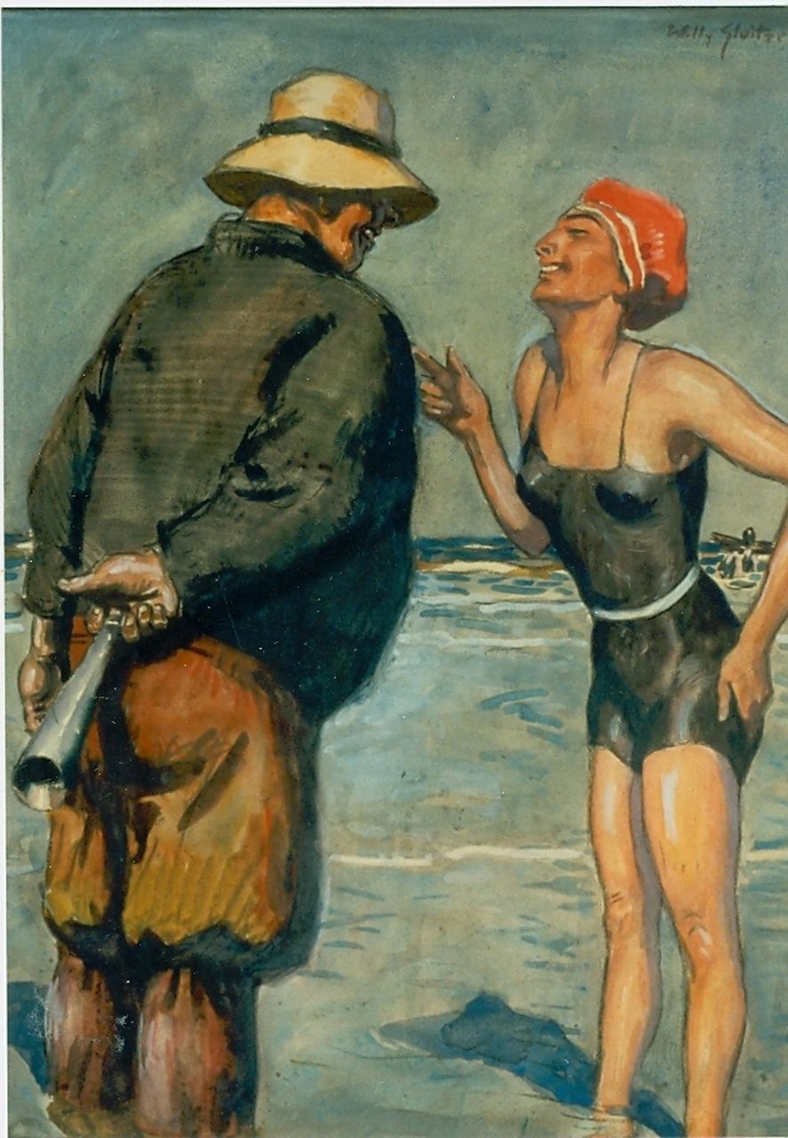 Willy Sluiter | Nach dem Bad im Meer, Scheveningen, Kreide und Aquarell auf Holzfaser, 47,0 x 37,0 cm, Unterzeichnet u.l.