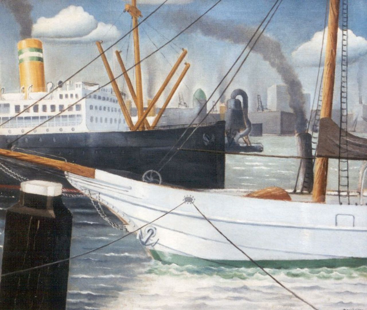 Wim Bosma Kunstwerk • Gemälde • zuvor zu verkaufen Moored shipping, Rotterdam