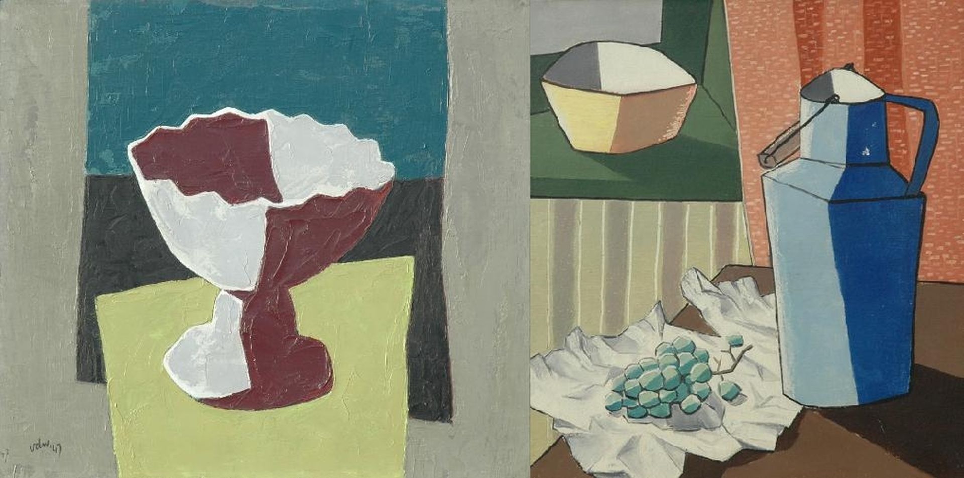 Öl auf Holz 37,5 x 41,6 cm, signed l.l. with initials und painted '47 twice