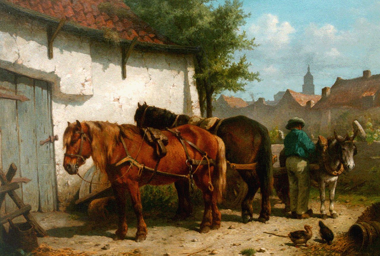 Wouter Verschuur jr. Kunstwerk • Gemälde • zuvor zu verkaufen A farmer, two horses and a donkey