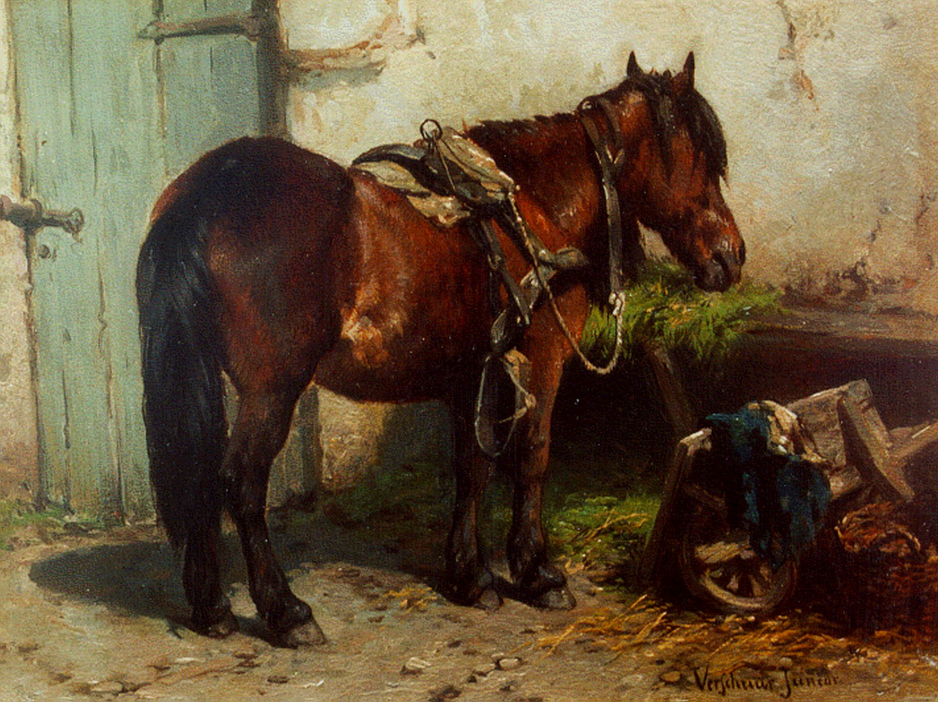 Verschuur jr. W.  | Wouter Verschuur jr., A horse on a yard, Öl auf Holz 15,2 x 20,3 cm, signed l.r.