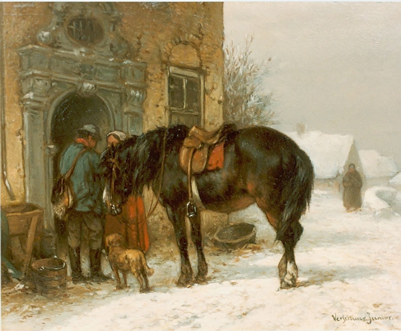 Wouterus Jr. war der jüngste Sohn von Wouterus Verschuur Sr. und auch ein Schüler seines Vaters. 1859 wurde er als Student bei der Haarlemer Gesellschaft „Kunst Zij ons Doel“ eingeschrieben. Lebte und arbeitete in Amsterdam, Haarlem, Menton, Paris, Genf und Lausanne. Verschuur malte und zeichnete Landschaften und Stalleinrichtungen mit Pferden. Dabei entwickelte er einen eigenen Stil, der sich deutlich von dem seines Vaters, der ein renommierter Pferdemaler war, unterscheidet.