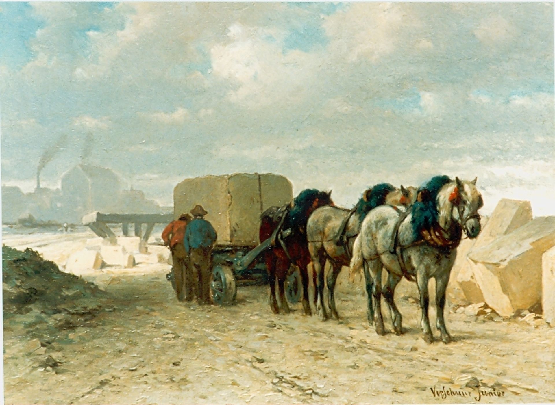 Wouterus Jr. war der jüngste Sohn von Wouterus Verschuur Sr. und auch ein Schüler seines Vaters. 1859 wurde er als Student bei der Haarlemer Gesellschaft „Kunst Zij ons Doel“ eingeschrieben. Lebte und arbeitete in Amsterdam, Haarlem, Menton, Paris, Genf und Lausanne. Verschuur malte und zeichnete Landschaften und Stalleinrichtungen mit Pferden. Dabei entwickelte er einen eigenen Stil, der sich deutlich von dem seines Vaters, der ein renommierter Pferdemaler war, unterscheidet.