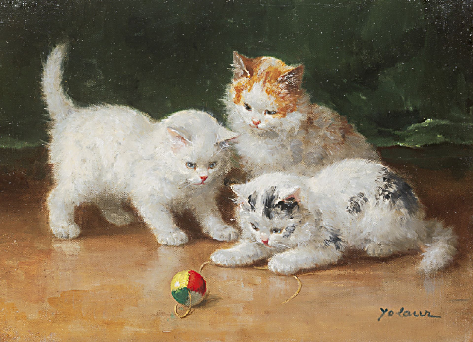 Yo Laur Kunstwerk • Gemälde • zuvor zu verkaufen Three kittens playing