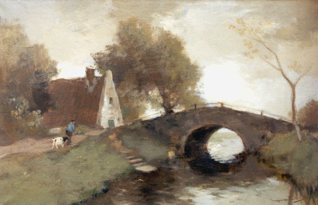 Ype Wenning Kunstwerk • Gemälde • zuvor zu verkaufen A farmer and his goat near an arched bridge