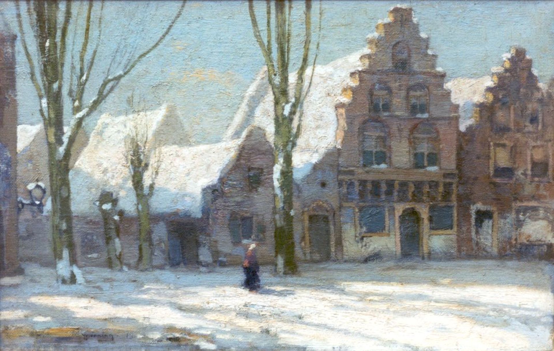 Ype Wenning Kunstwerk • Gemälde • zuvor zu verkaufen A snow-covered town, Franeker