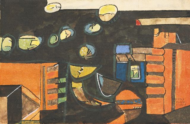 Piet Ouborg | In heftige beweging (In heftiger Bewegung), Gouache auf  Papier und Holzfaser, 50,5 x 65,1 cm, Unterzeichnet u.r. mit Initialen und datiert '48