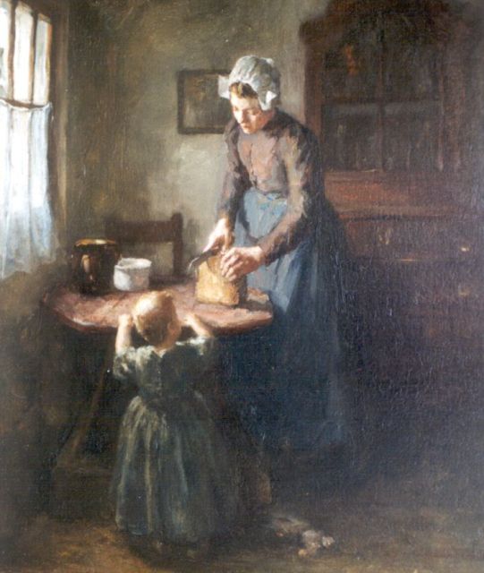 Johannes Evert Akkeringa | Mutter mit Kind auf einem Dorfweg, Öl auf Holz, 17,4 x 32,5 cm, Unterzeichnet u.l.