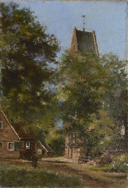 Gerrit van Jeveren | Anblick auf den Montelbaansturm am Oude Schans, Amsterdam, Öl auf Leinwand, 30,3 x 40,5 cm, gesigneerd r.o. (resten)