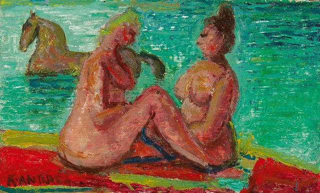 Kees Andréa | Zwei badende Frauen, Öl auf Holz, 11,0 x 18,2 cm, Unterzeichnet u.l.
