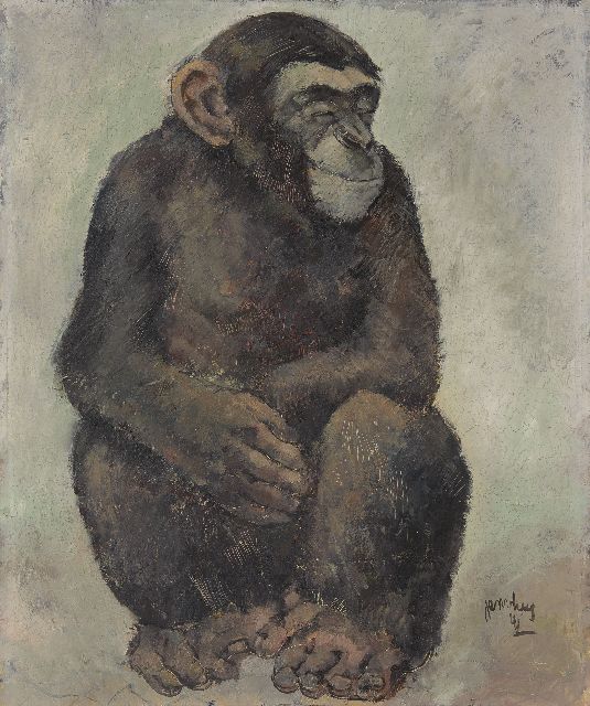 Jan van Heel | Sitzender Affe, Öl auf Holzfaser, 60,0 x 50,0 cm, Unterzeichnet u.r. und datiert '41