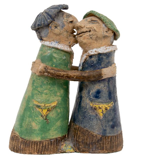 Harm Kamerlingh Onnes | Gruppenumarmung, polychrome glazed earthenware, 16,5 x 15,0 cm, Unterzeichnet auf der Unterseite mit Monogramm und Stempel und datiert '81