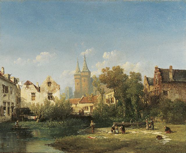 Petrus Gerardus Vertin | A summer day in Monnickendam, Öl auf Holz, 9,8 x 15,8 cm, signed l.l.