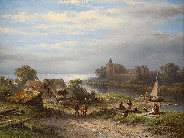 Jacob Jan Coenraad Spohler | A river landscape in summer, Öl auf Holz, 15,8 x 20,6 cm, signed l.r.