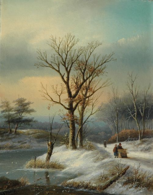 Charles Leickert | Land folk by a sledge on a frozen river, Öl auf Holz, 15,2 x 20,7 cm, signed l.r.